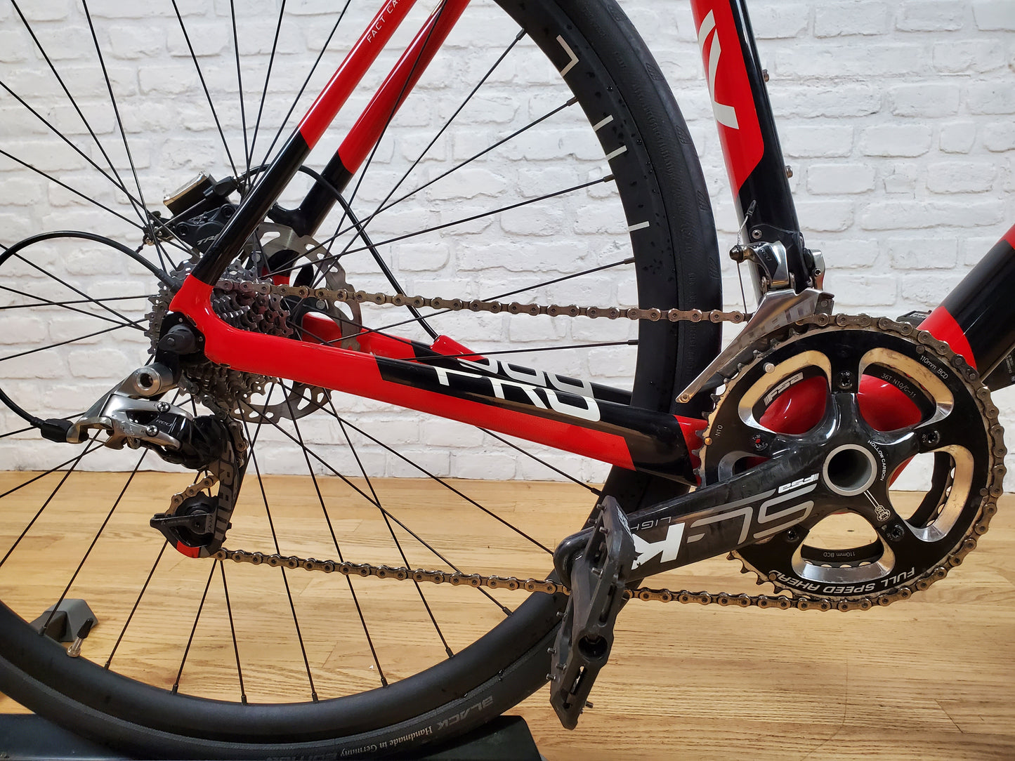 2013 Specialized Crux Pro gravel bike. Fact 10r carbon fiber cyclocross-gravel specific frame. SRAM Red 2x10 groupset with TRP hydraulic disc brakes and SL-K Carbon cranks. The Hydra wheels with Gatorskin 32mm tires. Carbon seat post with PRO Vibe stem and bars. The bike is in excellent mechanical and cosmetic condition. Weighs in at 19lbs. 56cm frame for someone around 5'11.