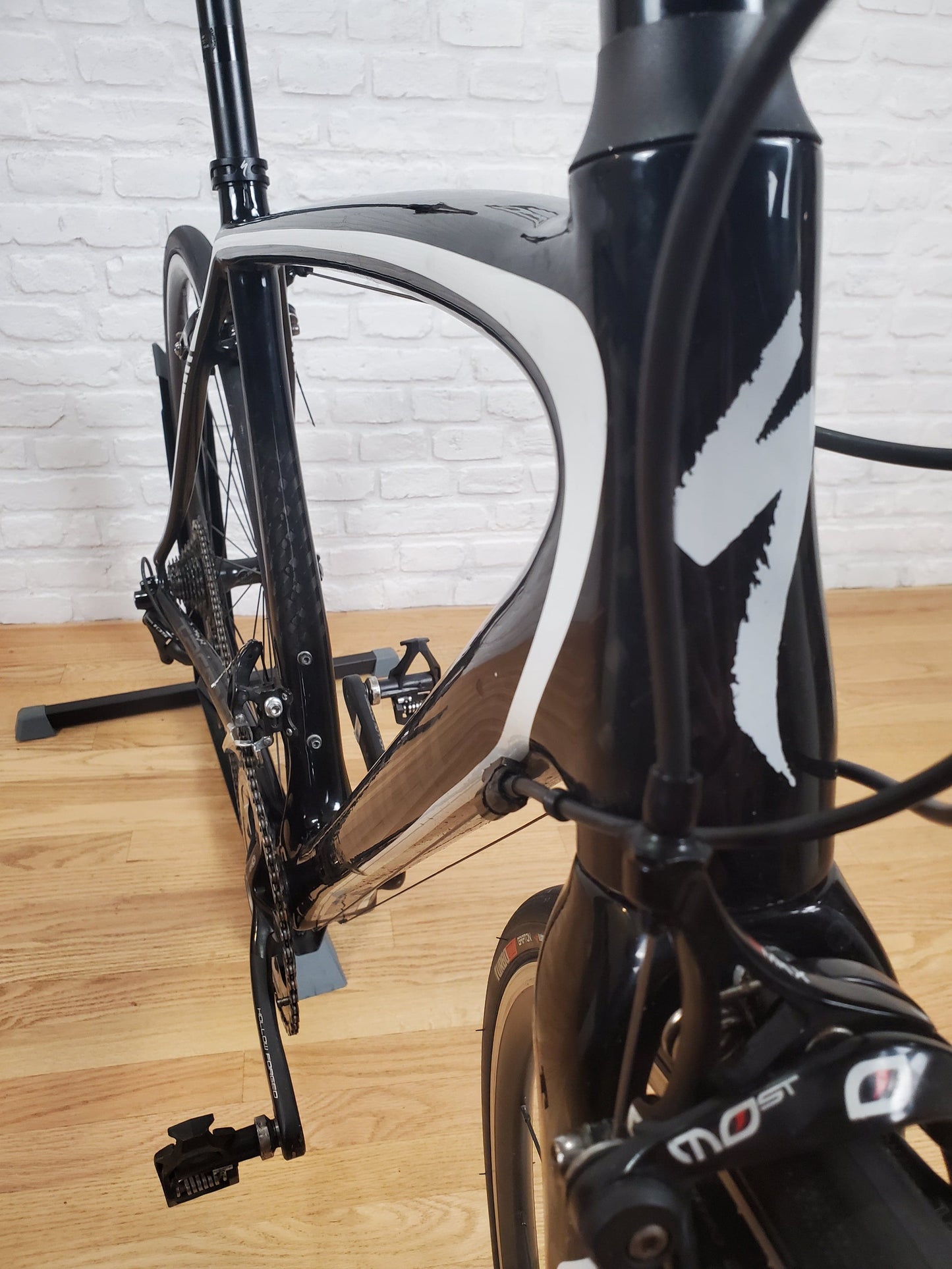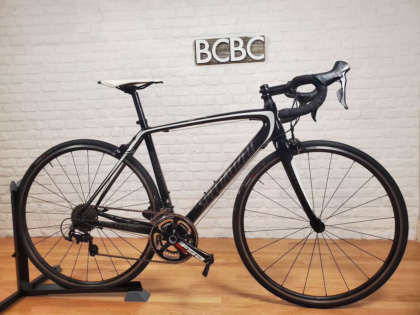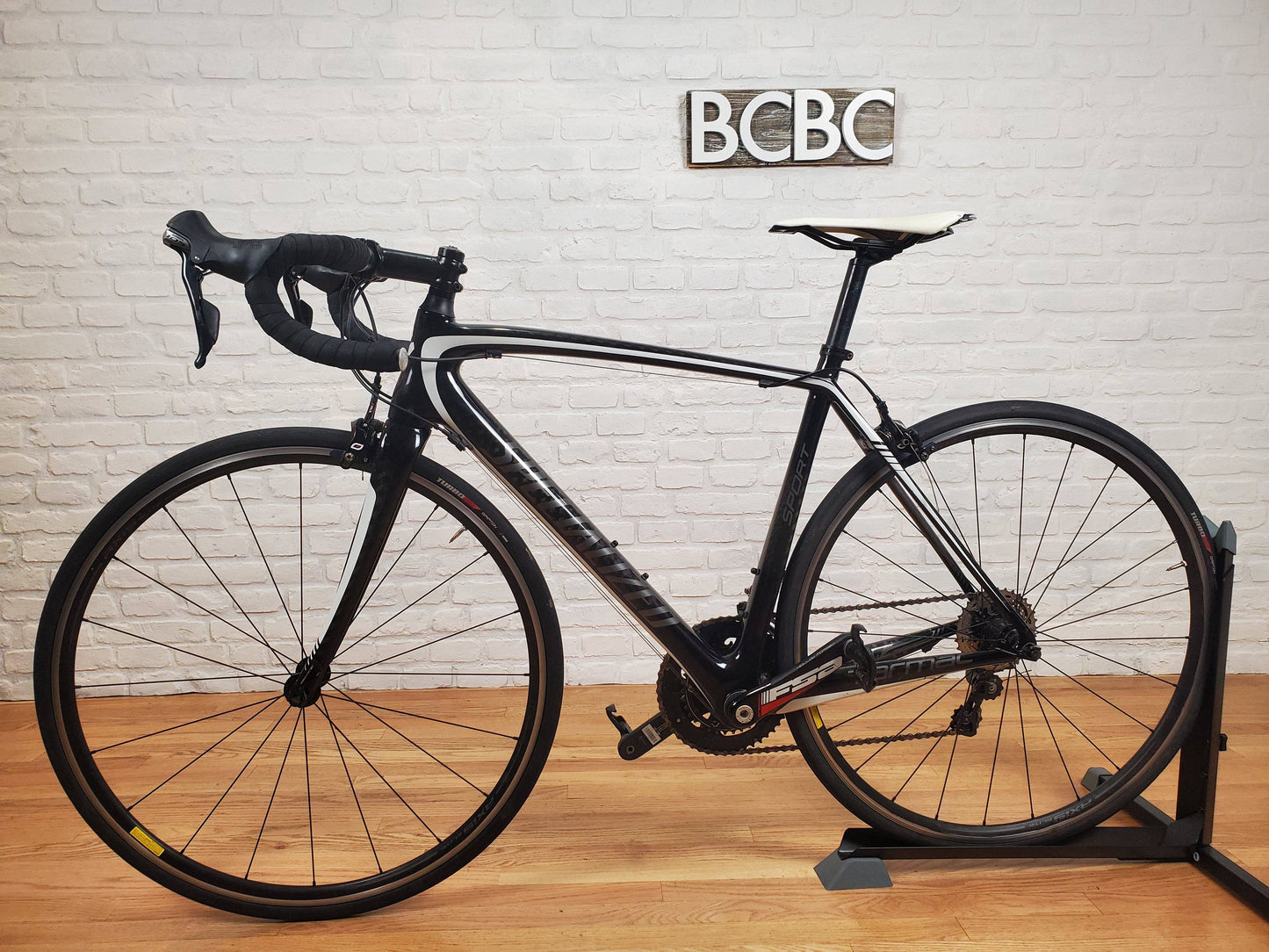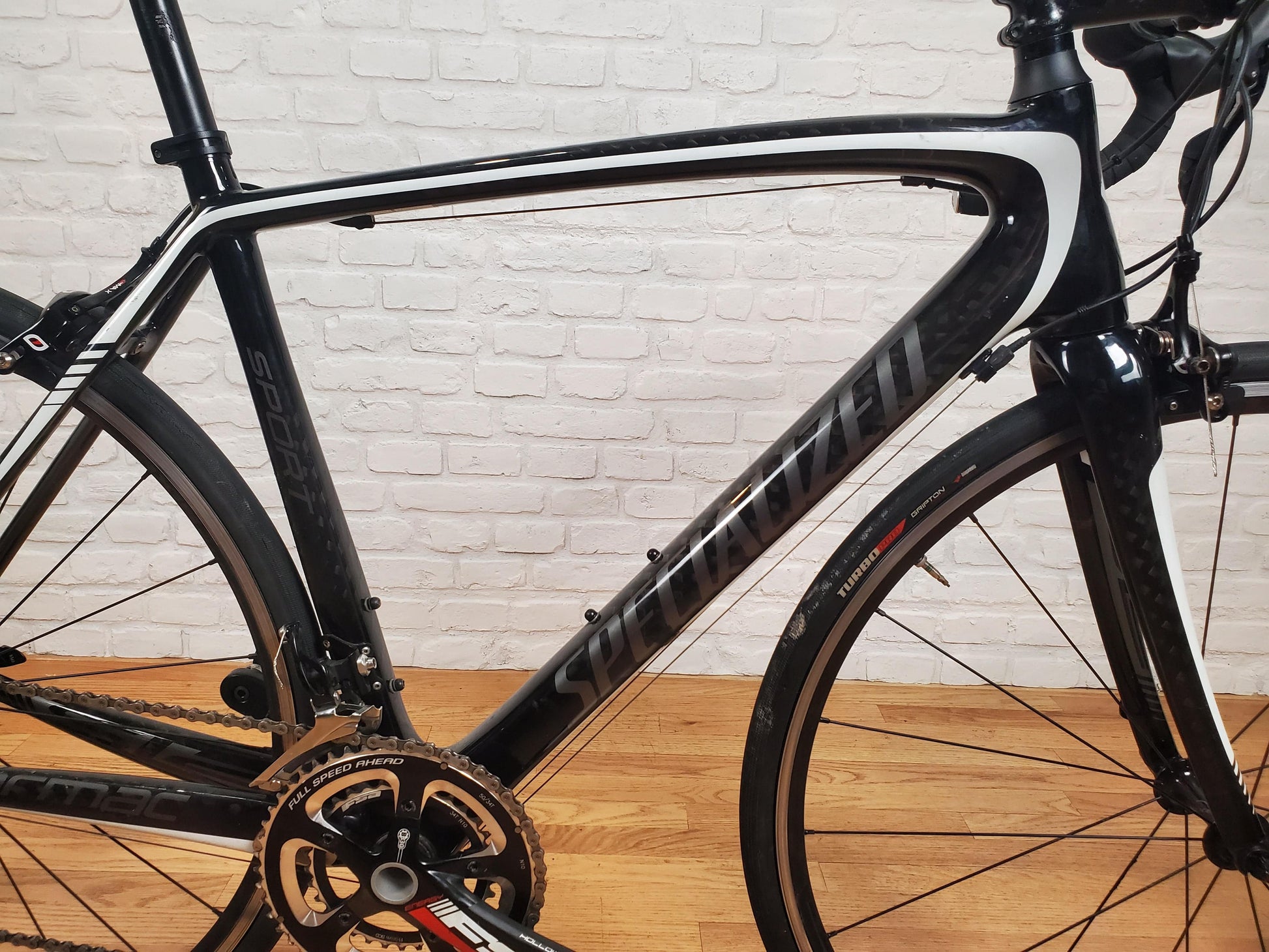 2013 Specialized Tarmac Sport road bike. Carbon fiber frame with racing geometry. Shimano 105 2x10 groupset. Axis elite wheels. 54cm frame for someone around 5'9. The bike is in good mechanical and cosmetic condition.