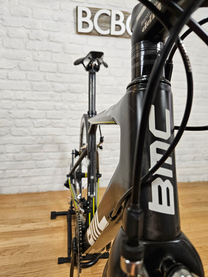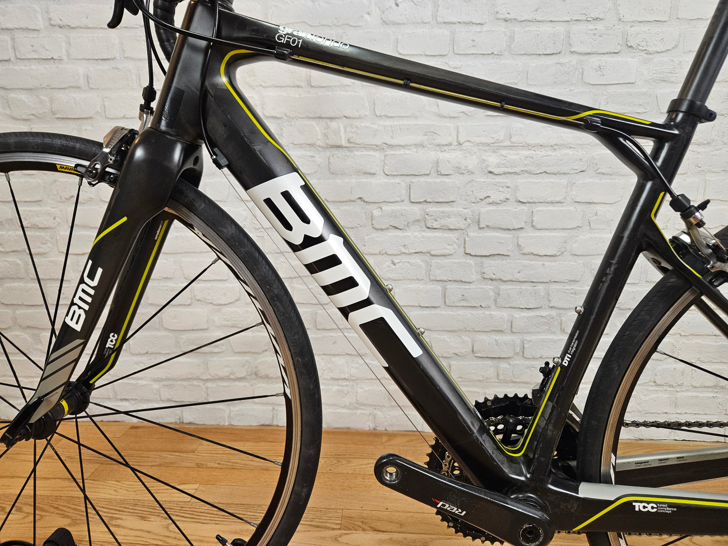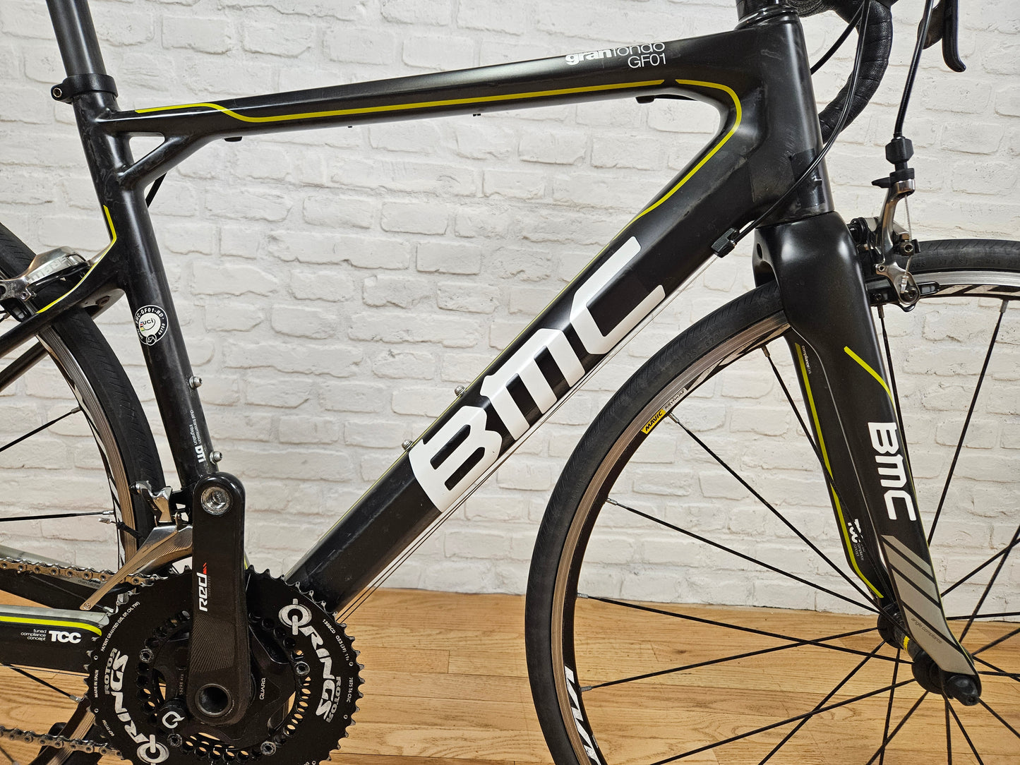 2014 BMC GranFondo GF01 road bike. Carbon fiber endurance geometry frame. SRAM Red 2x11 groupset with Q-Rings . Mavic Ksyrium wheels with Yksion Elite tires. ENVE carbon drop bars and Zipp stem. BMC carbon seat post with Belcorra saddle. The bike is in very good mechanical and cosmetic condition. Weighs in at 15.25lbs. 51cm frame for someone around 5'7.