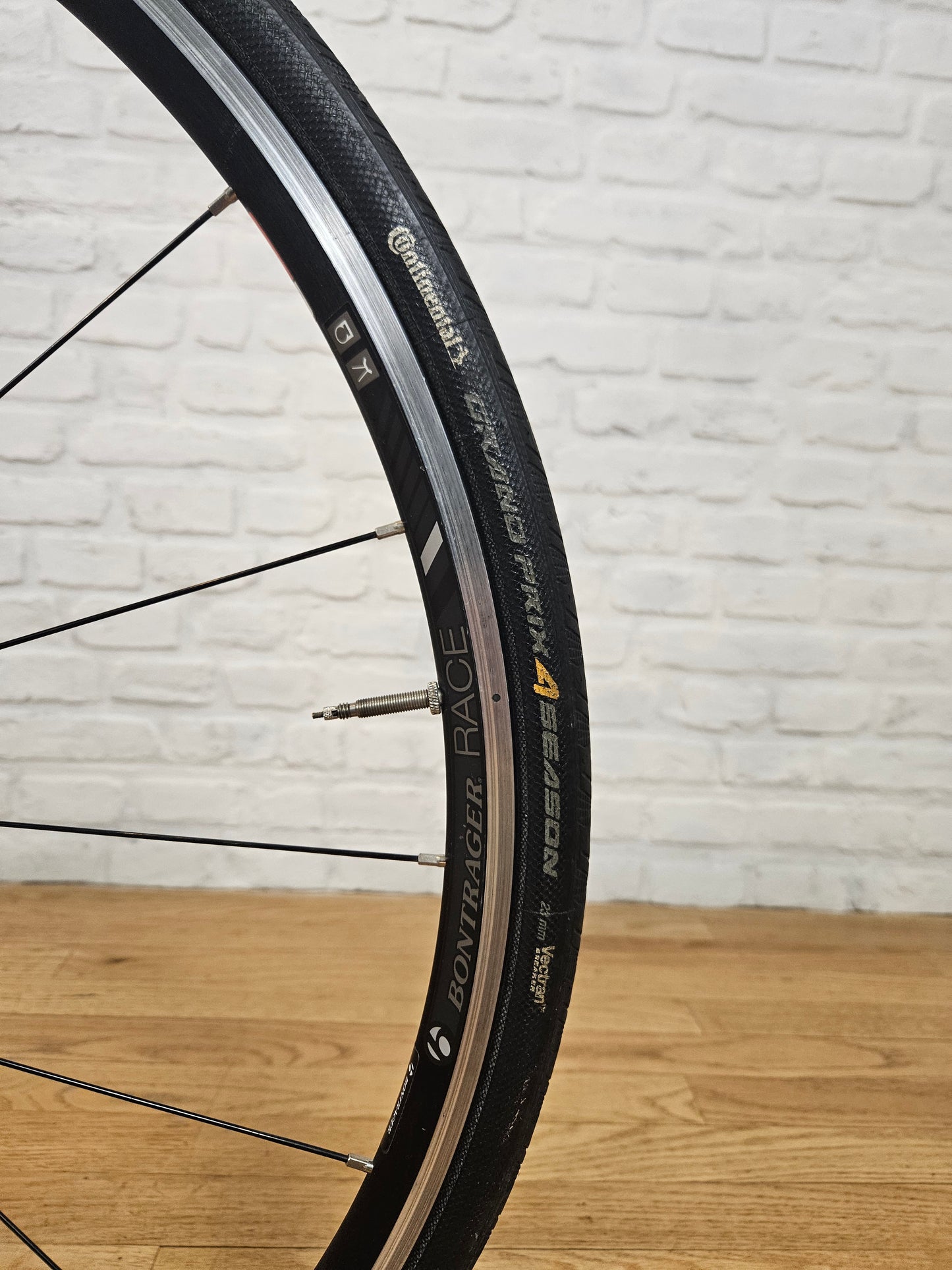 2014 Trek Domane 5.2 road bike. 500 series OCLV carbon fiber frame with endurance geometry. Shimano Ultegra 2x11 groupset . Bontrager Race wheels and Continental Grand Prix 4 Season tires. The bike is in excellent mechanical and cosmetic condition. 56cm frame for someone around 5'11 feet tall. Weighs in at 17.5lbs.