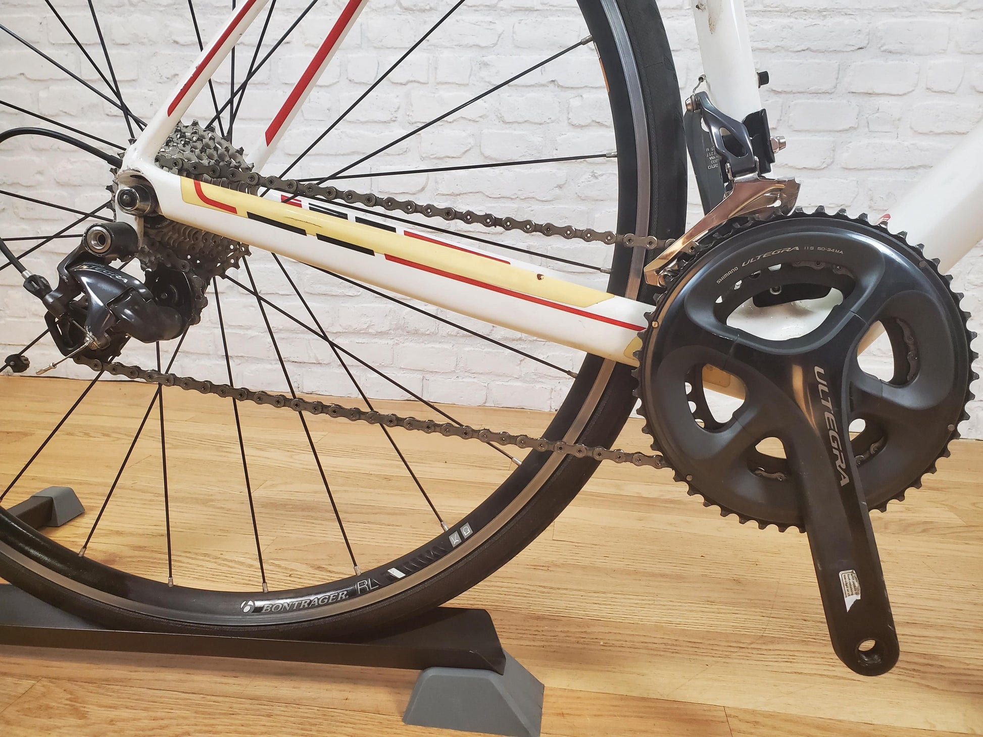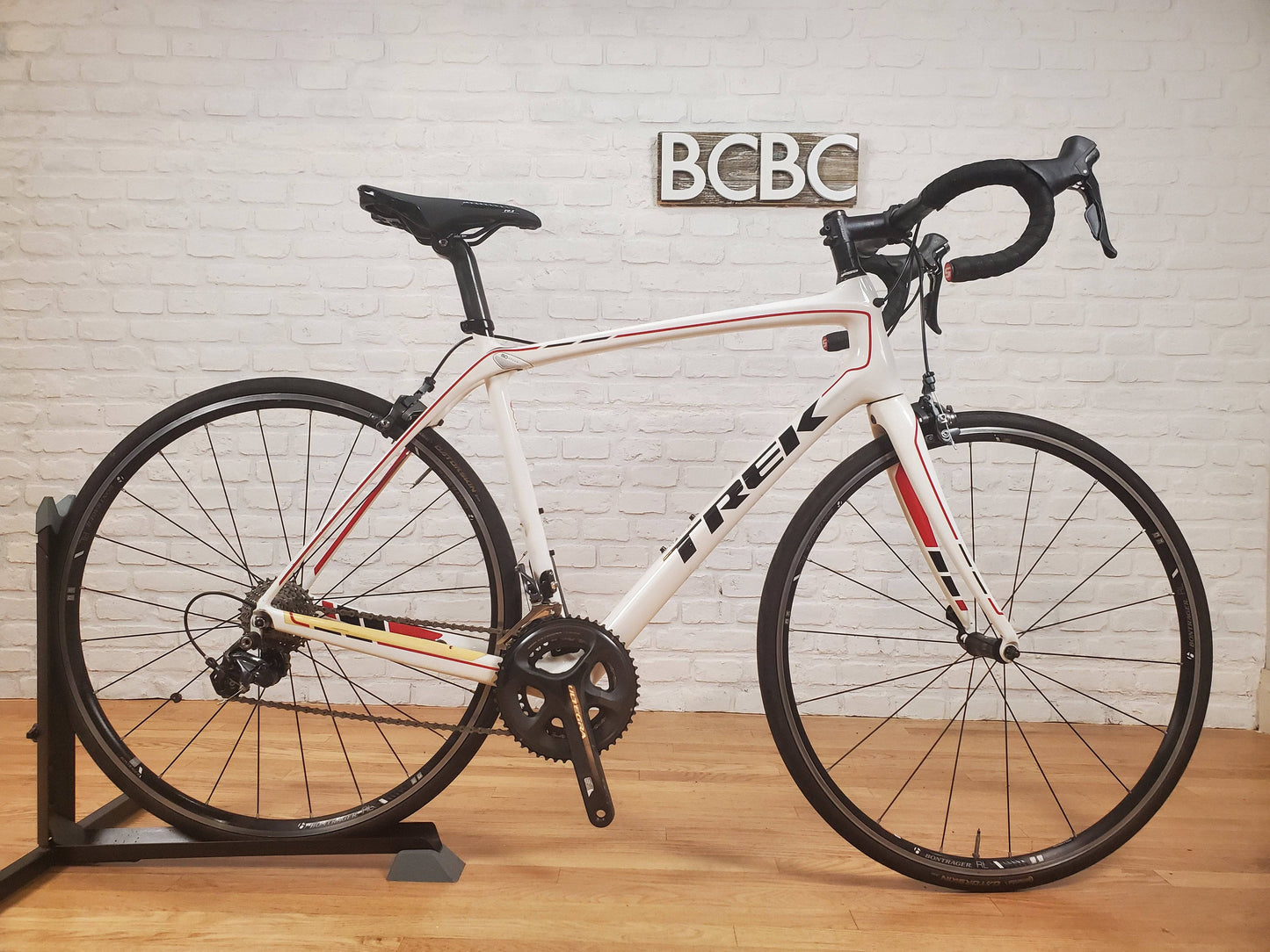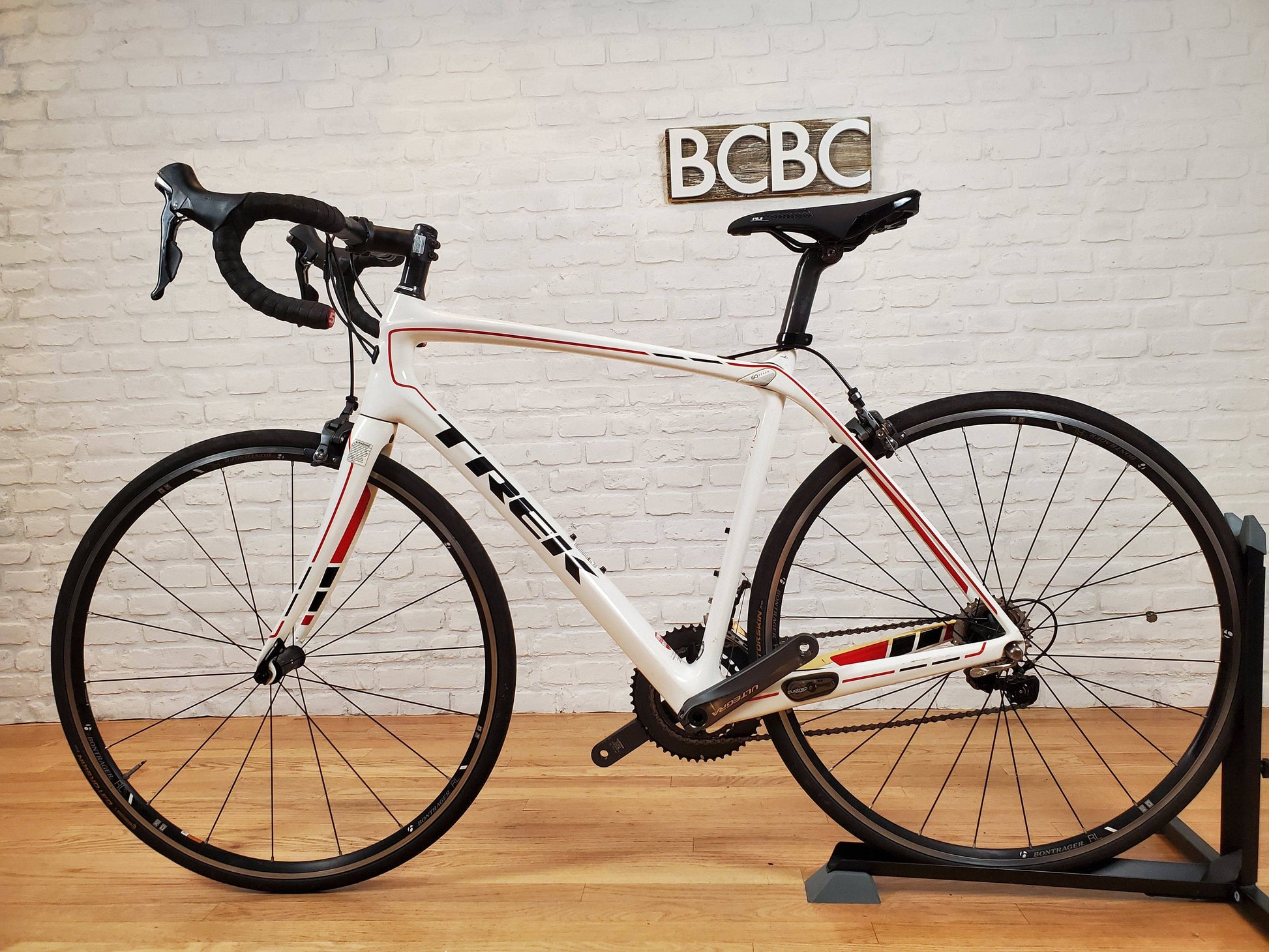 2014 Trek Domane 6.2 road bike. OCLV 600 series carbon fiber frame with endurance geometry and integrated carbon fiber seat post. Shimano Ultegra 2x11 mechanical groupset. Bontrager RL wheels with Gatorskin tires. 54cm frame for someone below 5'5. The bike is in very good mechanical and cosmetic condition.