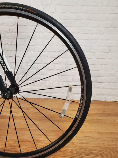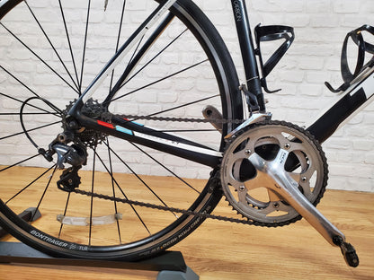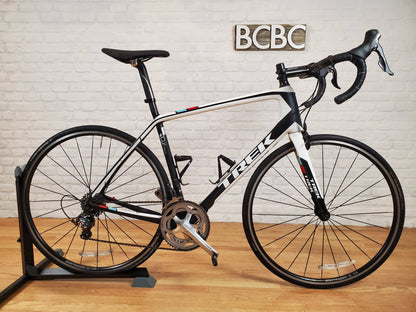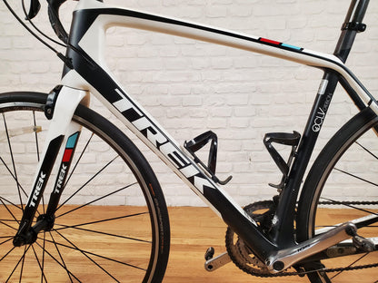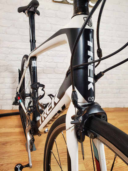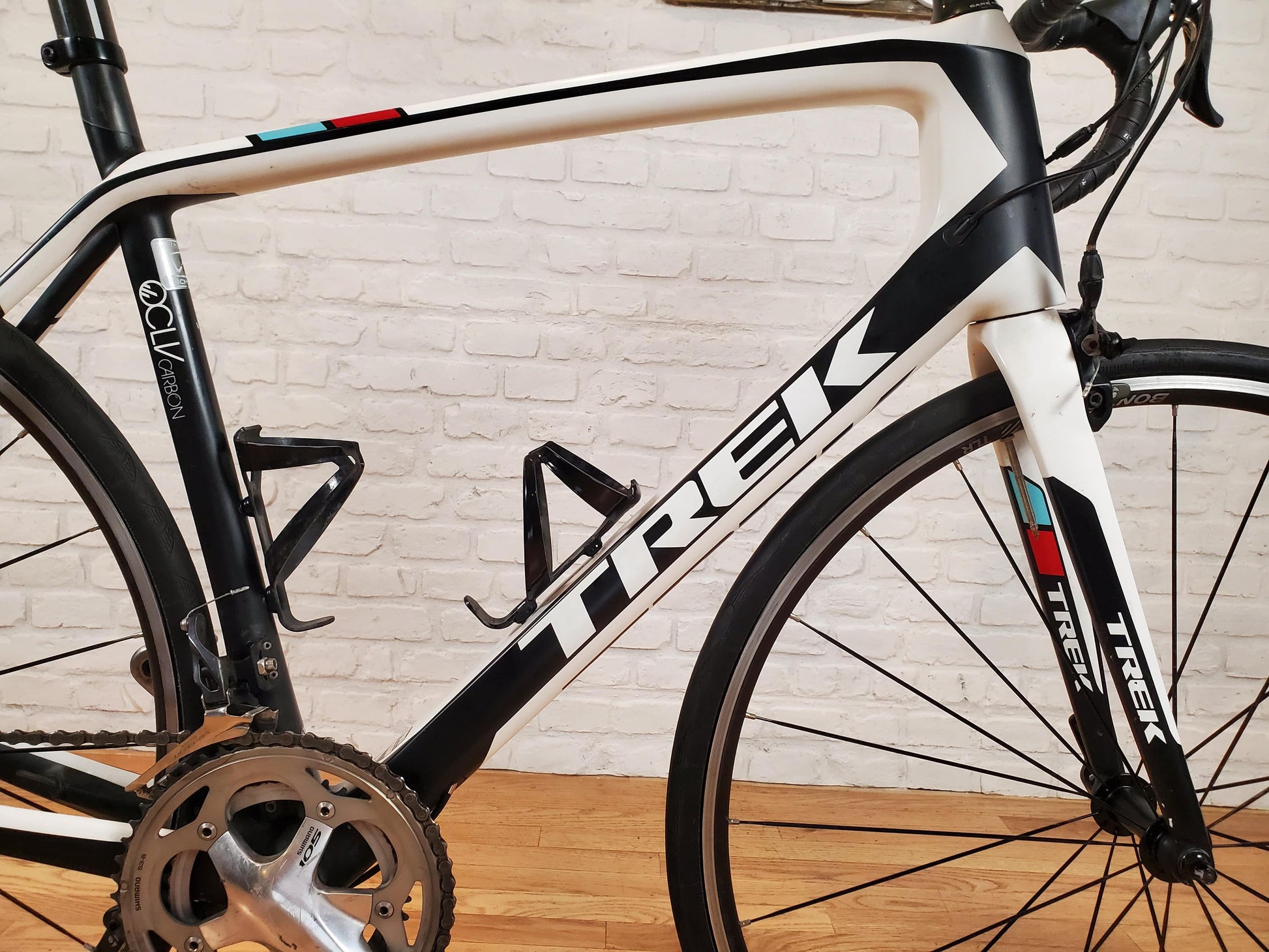 2014 Trek Madone 5.9 road bike. 500 series OCLV carbon fiber frame with Kammtail Virtual Foil geometry for racing. Shimano Ultegra 2x11 groupset with Direct Mount brakes. Bontrager TLR wheels with Continental tires. The bike is in very good mechanical and cosmetic condition, some paint chips by rear dropouts. 58cm frame for someone around 6 feet.