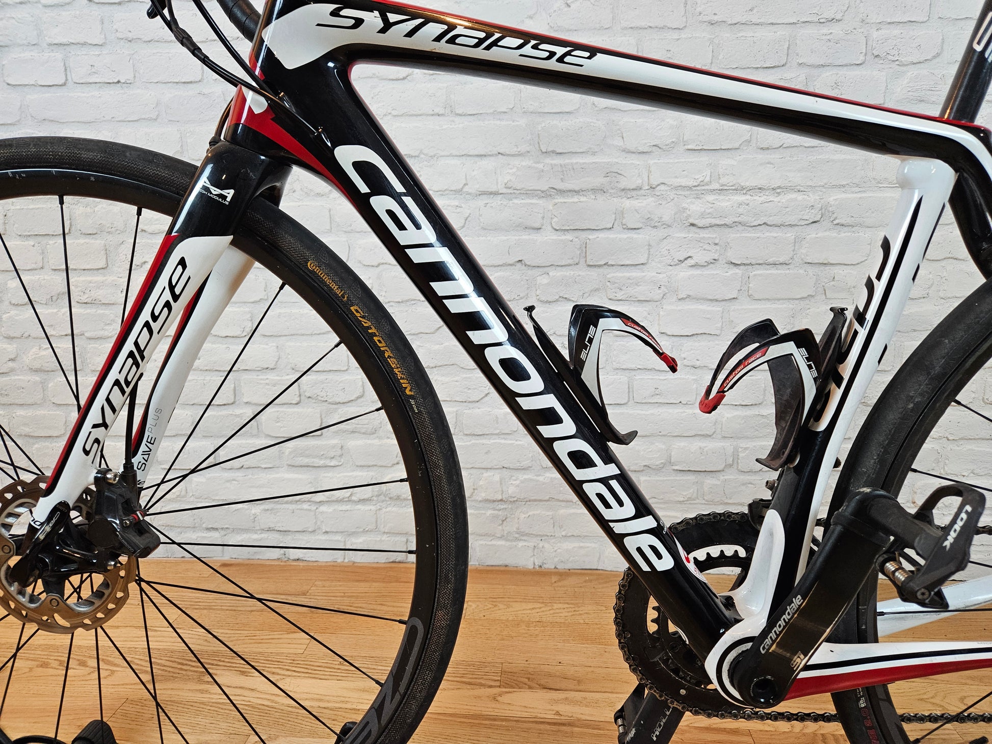 2015 Cannondale Synapse Carbon 3 road bike. High Modulus Carbon fiber frame with endurance geometry. Shimano Ultegra 2x11 groupset with hydraulic disc brakes. CZero carbon wheels. Carbon fiber carbon seat post with Fizik Aliante R saddle. The bike is in very good mechanical and cosmetic condition. 50cm for someone around 5'7 feet.