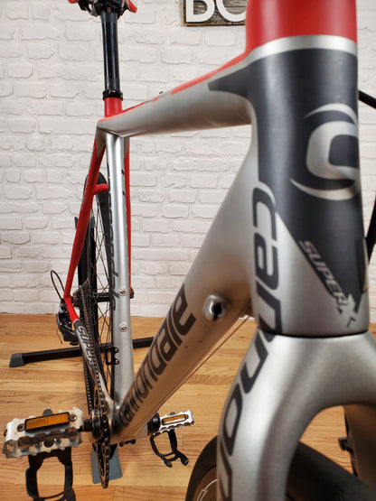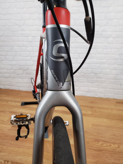 2016 Cannondale SuperX Cyclocross bike. Carbon fiber frame. SRAM Force 1x11 groupset. Mechanical disc brakes. Fulcrum Racing Sport DB wheels. Prologo saddle. In good condition with some minor scuffs. 58cm frame for someone around 6 feet.