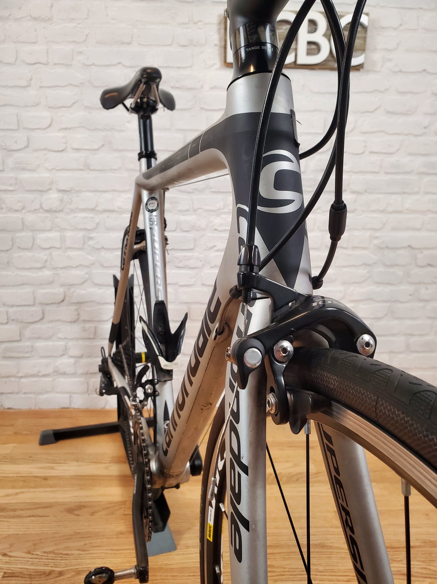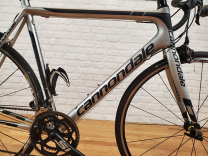 2016 Cannondale SuperSix EVO road bike. Carbon fiber frame with racing geometry. Shimano 105 2x11 groupset with Ultegra front and rear derailleur. Mavic Askium wheels with Grand Prix 4 Season tires. Bike in excellent mechanical and cosmetic condition. Bike weighs in at 18lbs. 56cm frame for someone around 5'11.