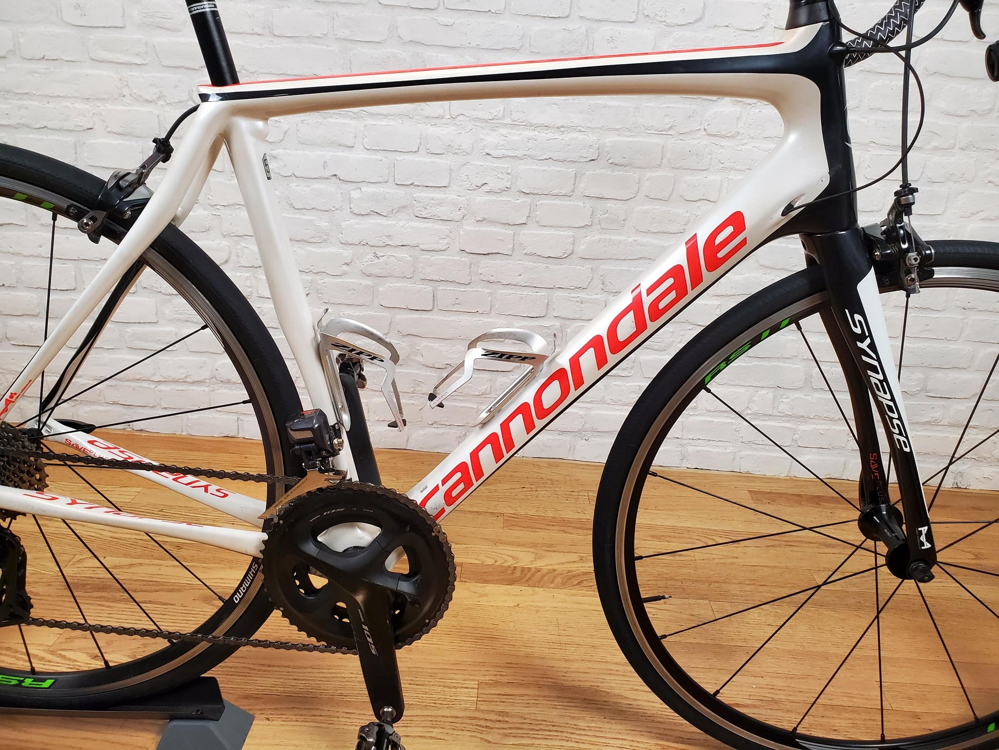 2016 Cannondale Synapse Hi Mod road bike. High Modulus Carbon fiber frame with endurance geometry. Shimano Dura Ace Di2 2x11 electronic groupset, with Ultegra shifters and 105 crank set. Shimano RS 11 wheels. 56cm frame for someone around 5'10. The bike is in very good mechanical and cosmetic condition.
