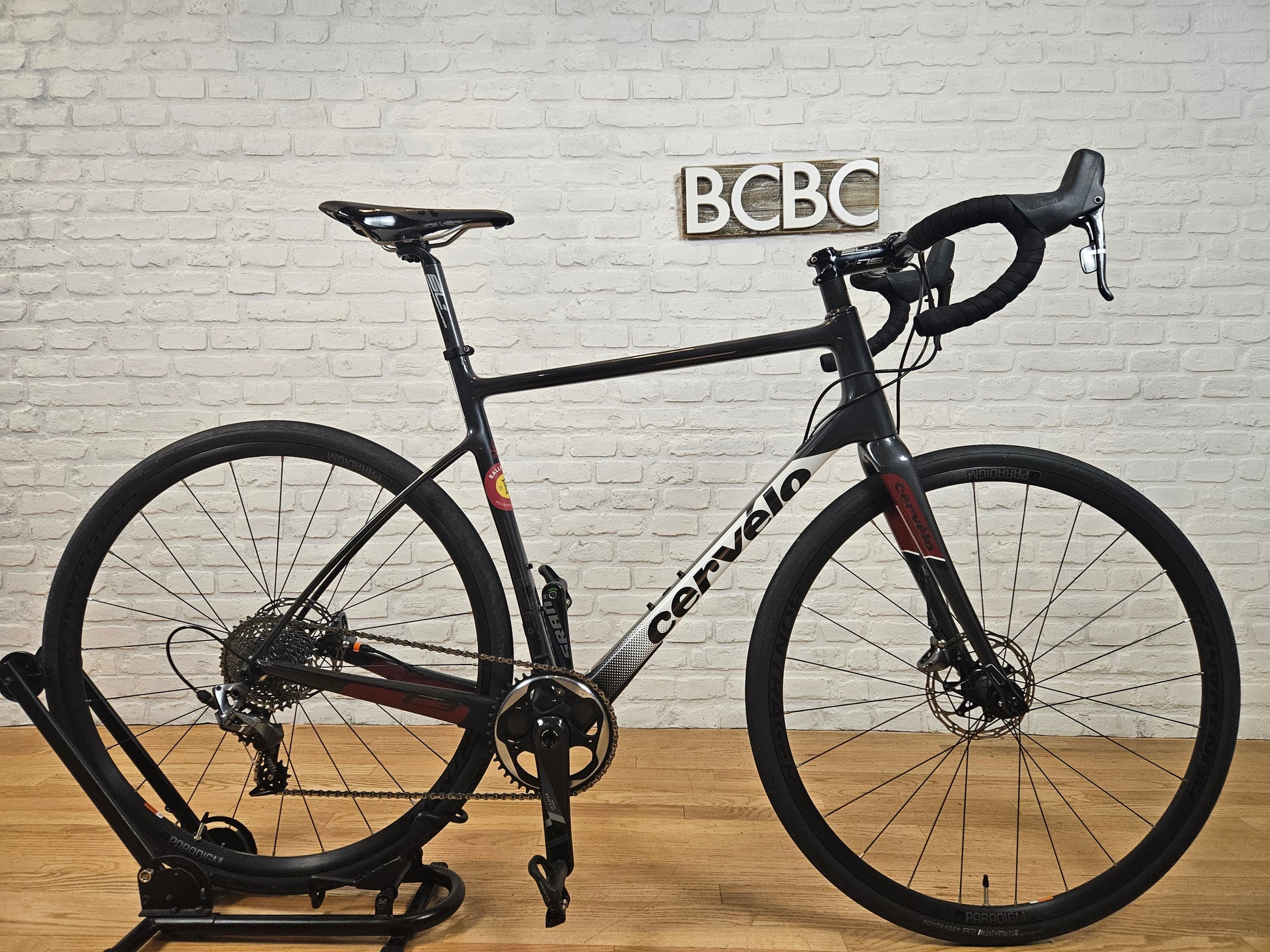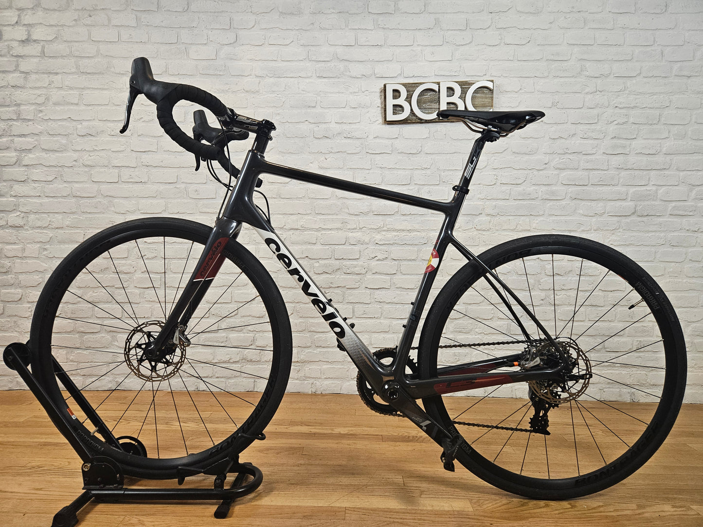 2017 Cervelo C3 road bike. Carbon fiber frame with endurance geometry. SRAM Force 1x11 groupset with hydraulic disc brakes. Bontrager Paradigm wheels with R2 32mm tires. FSA SL-K carbon seatpost and drop bars, Fizik saddle. 56cm for someone around 5'11 feet tall. In excellent cosmetic and mechanical condition.
