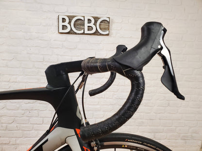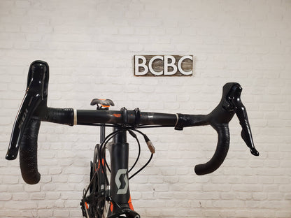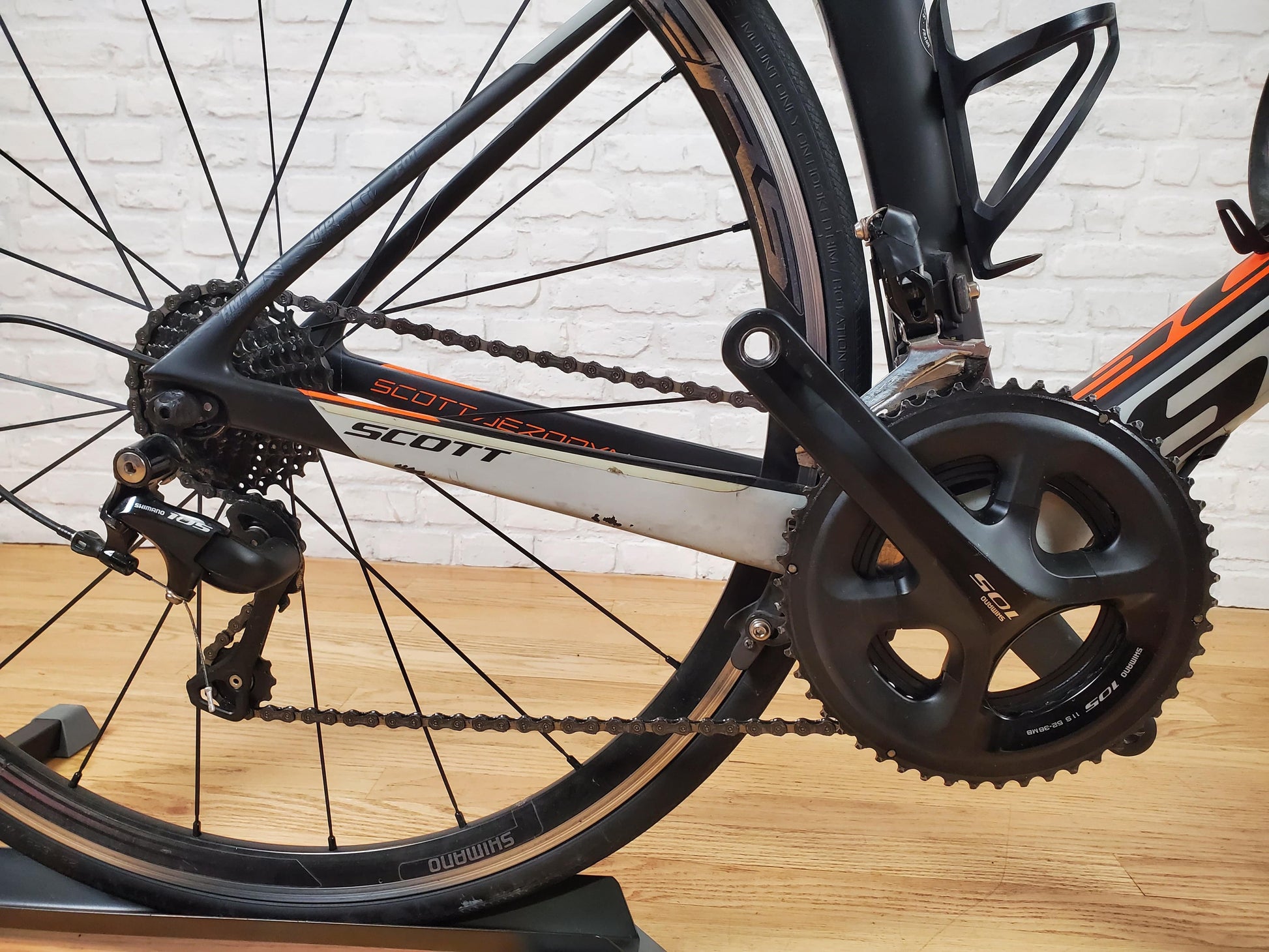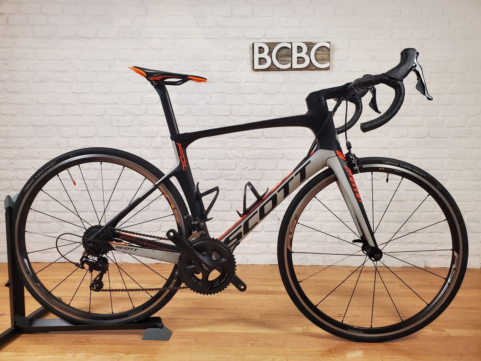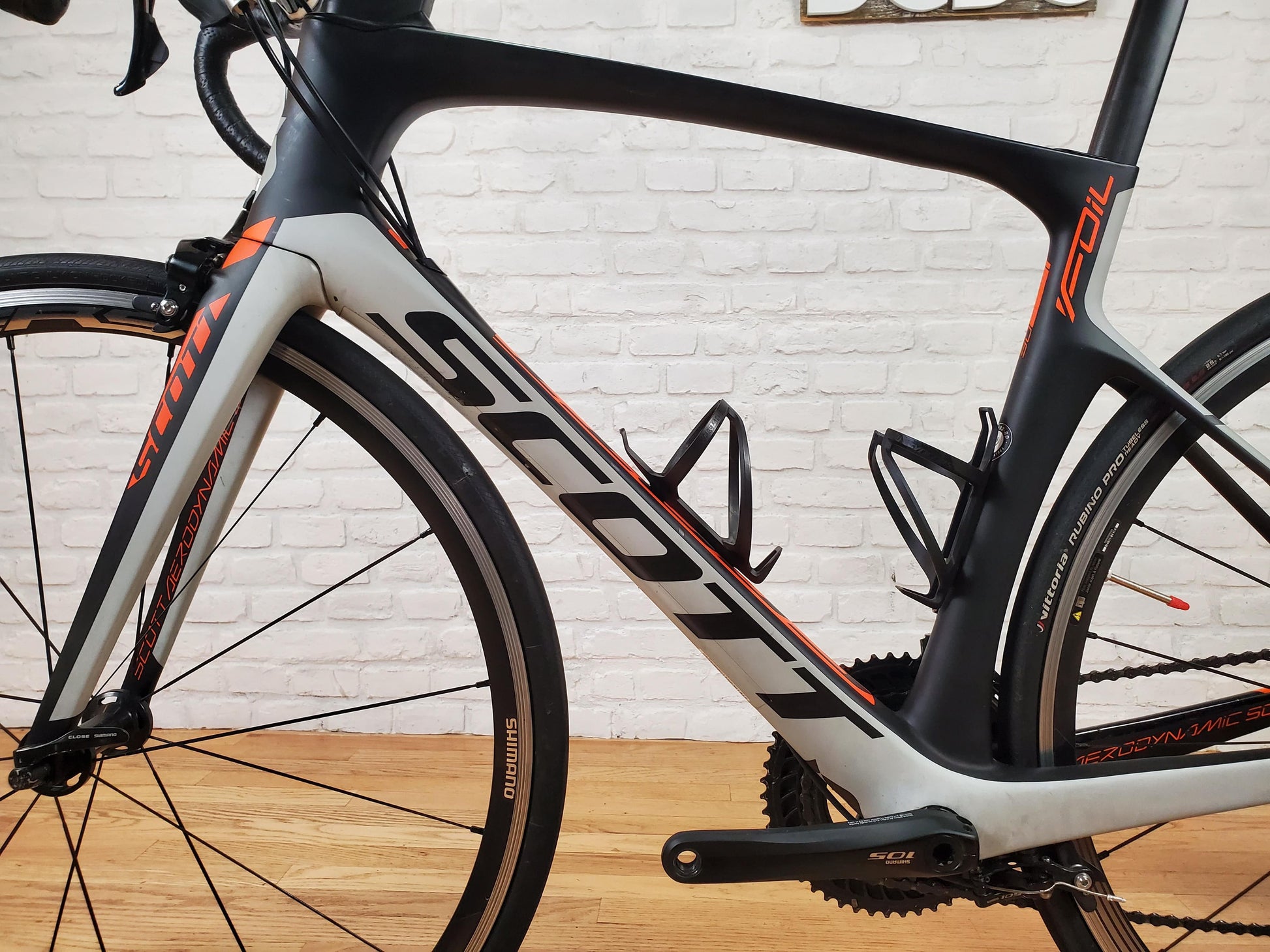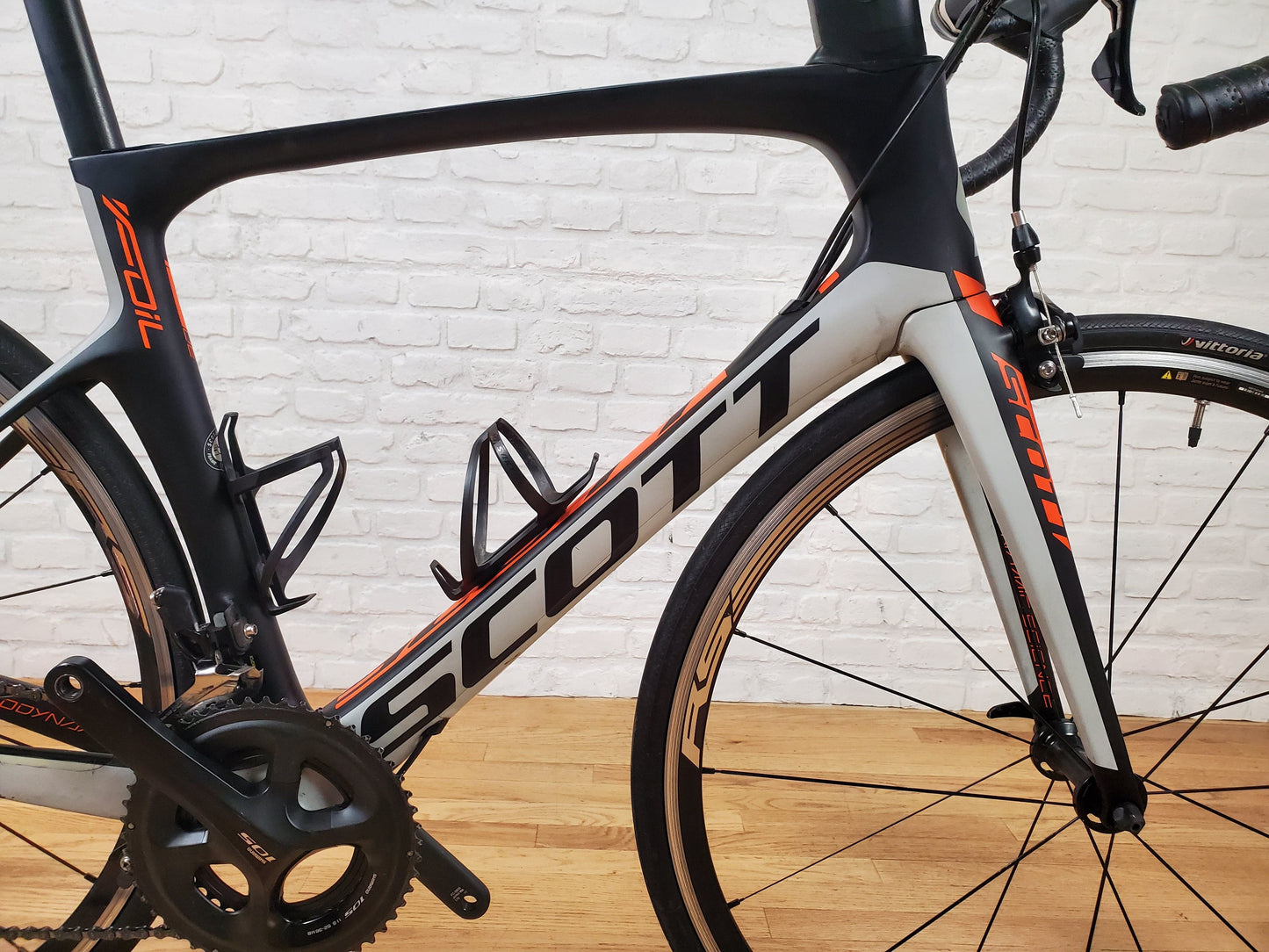 2017 Scott Foil 30 road bike. Aero carbon fiber frame which balances speed and endurance. Shimano 105 2x11 mechanical groupset. Carbon fiber seat post and integrated drop bars. Shimano RS wheels with Vittoria Rubino Pro tires. In very good mechanical condition with a couple small cosmetic imperfections. 54cm frame for someone around 5'9.