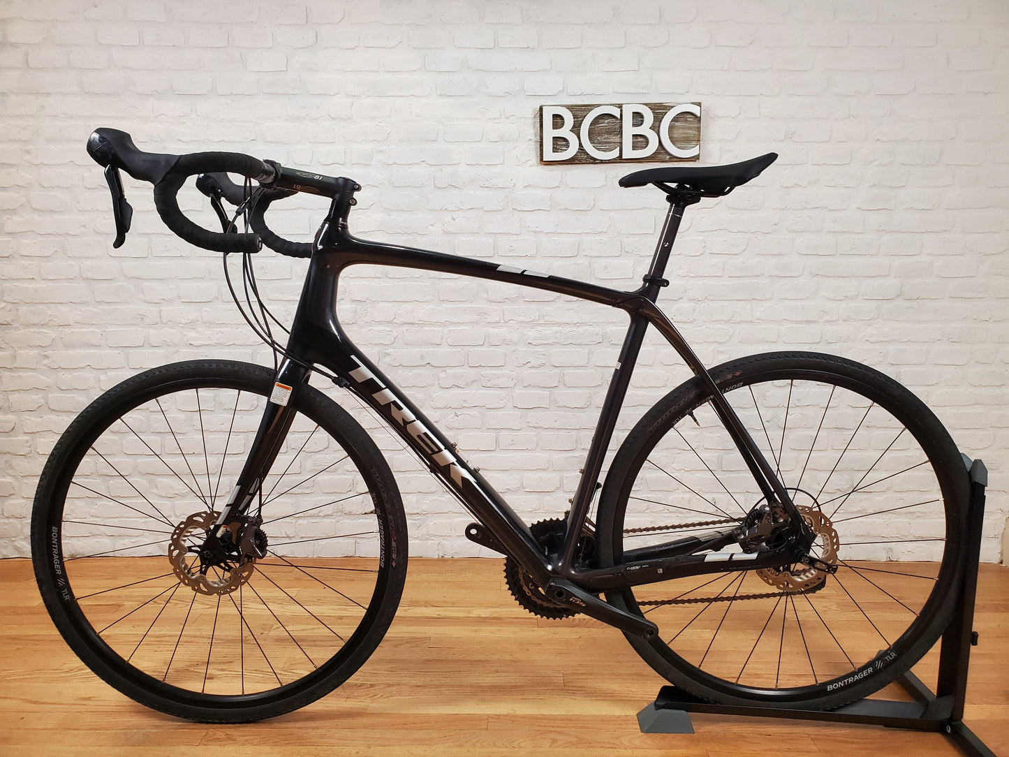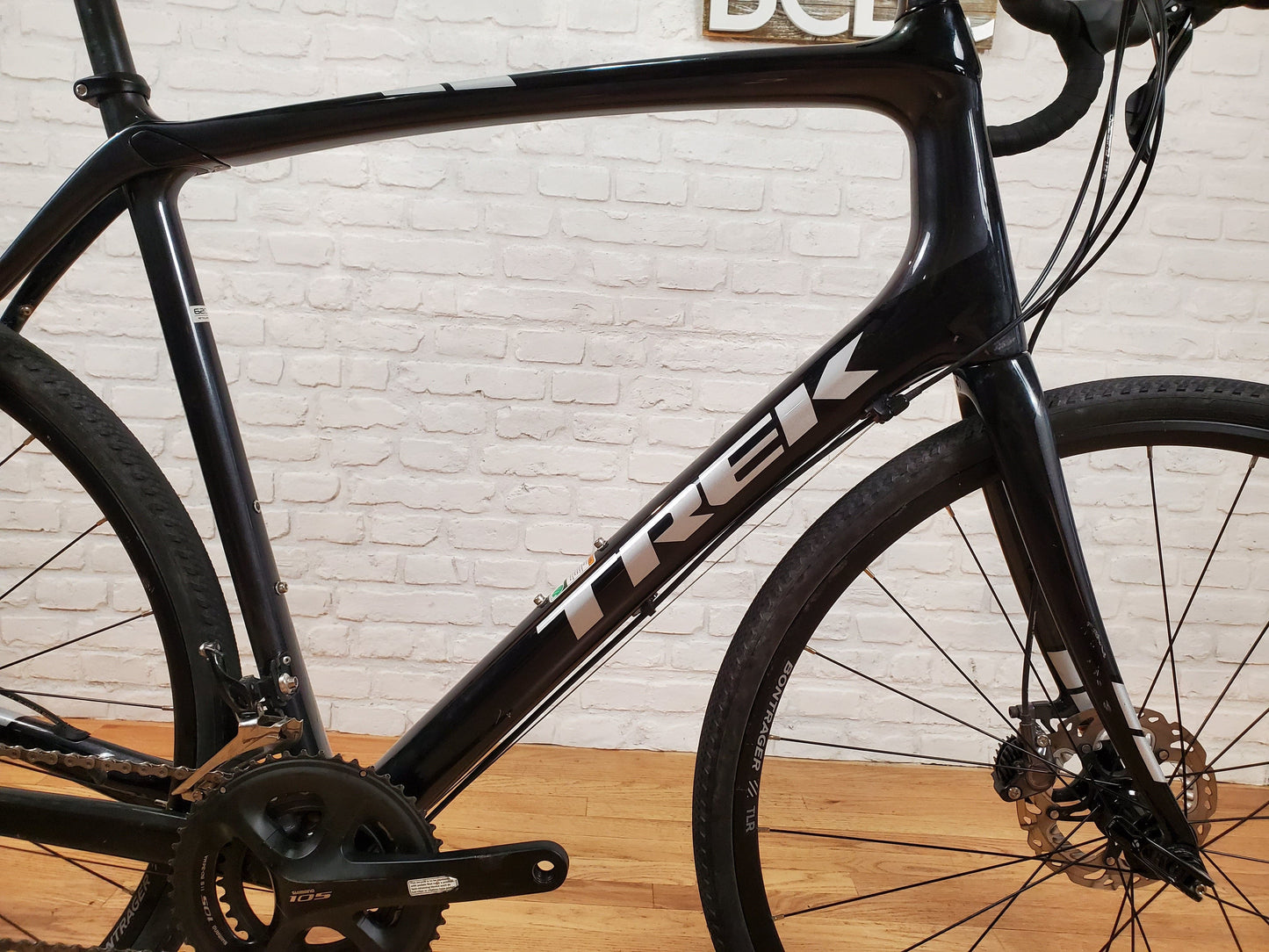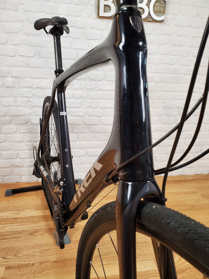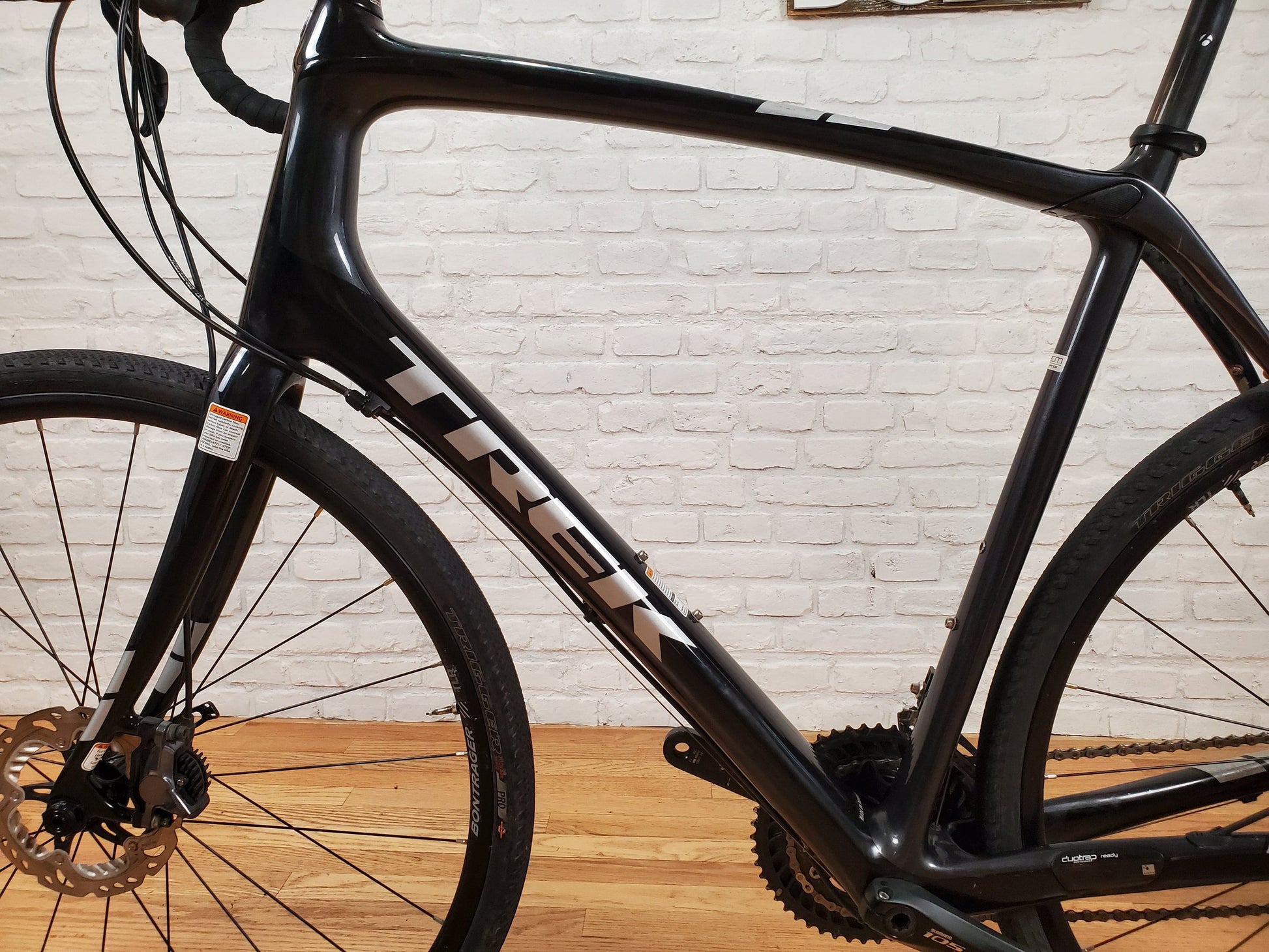 2017 Trek Domane S gravel bike. 400 Series OCLV carbon fiber frame with endurance geometry, ISO decoupler. Shimano 105 2x11 groupset with Hydraulic Disc brakes. Bontrager TLR wheels with 33mm Trigger tires and can be converted to road. The bike is in good mechanical and cosmetic condition. 62cm frame for someone around 6'5.