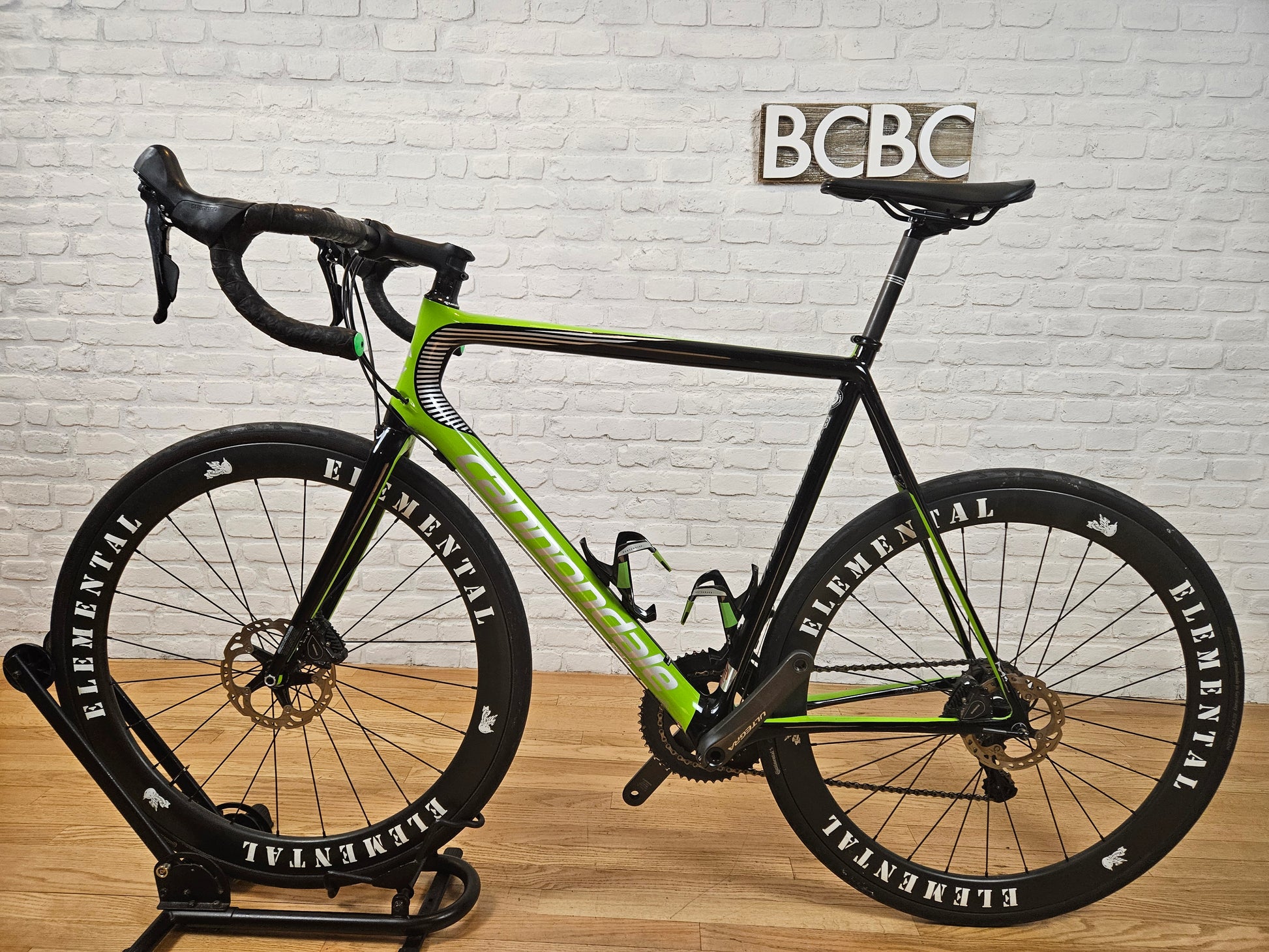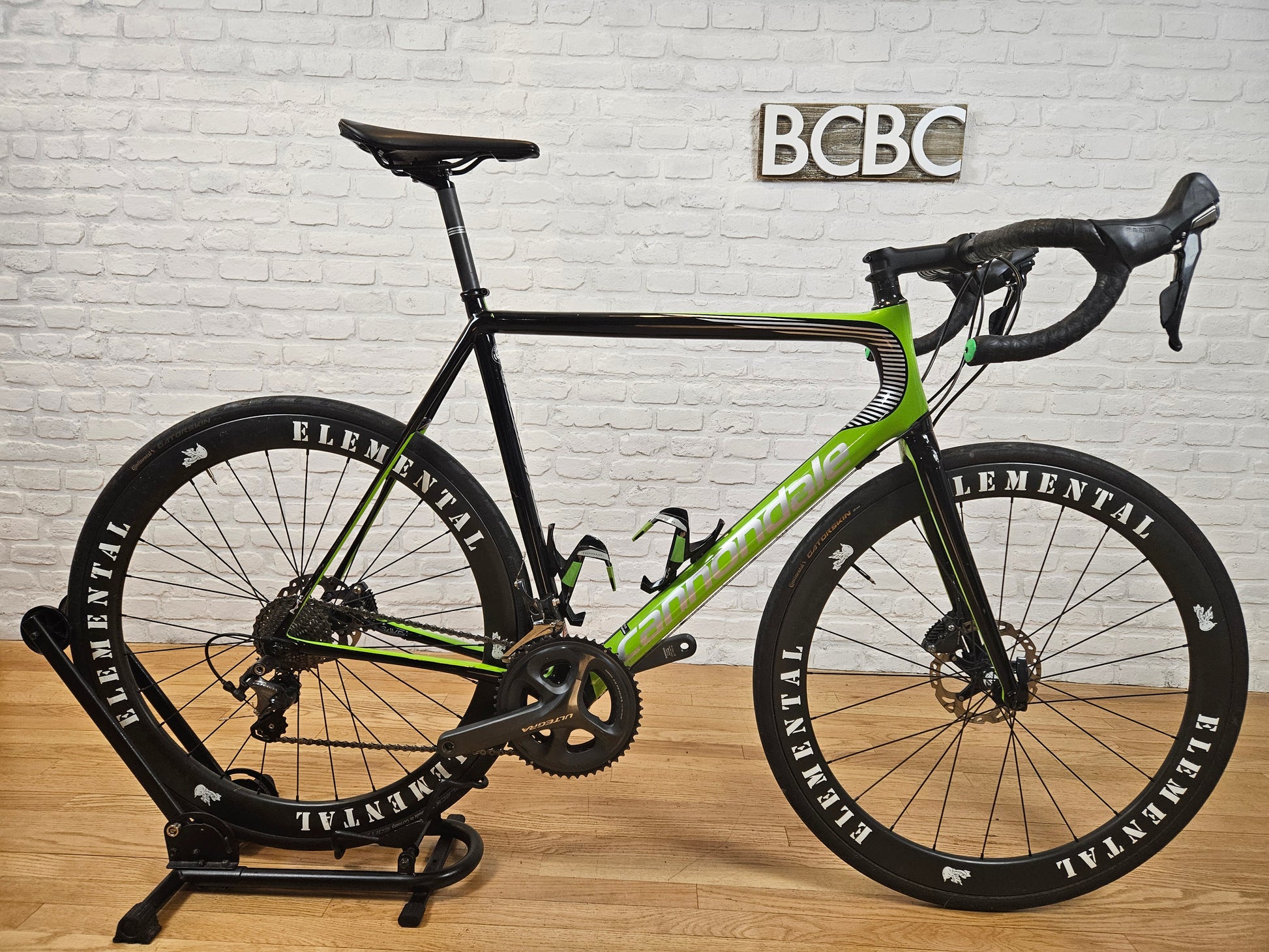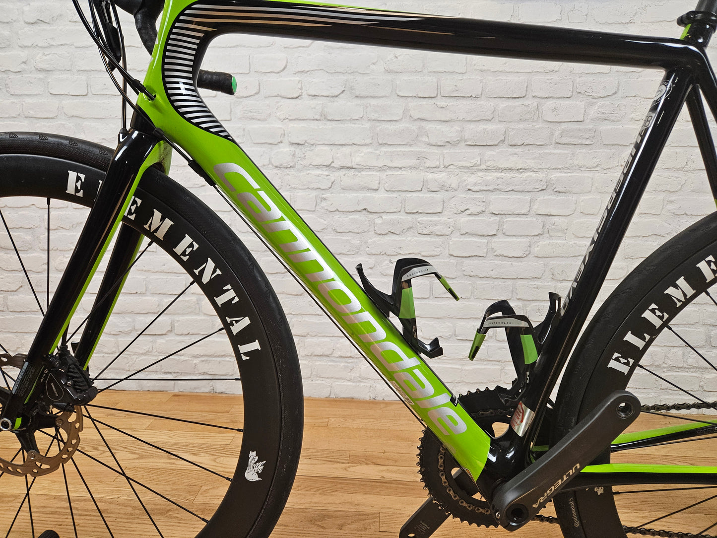 2018 Cannondale SuperSix EVO Hi Mod road bike. Hi Mod Carbon fiber frame with racing geometry. Shimano Ultegra 2x11 groupset with hydraulic disc brakes. Element deep section carbon fiber wheels with Gatorskin 28mm tires. In great condition with a couple small scratches. 58cm for someone around 6 feet.
