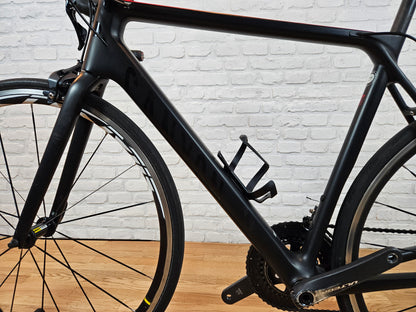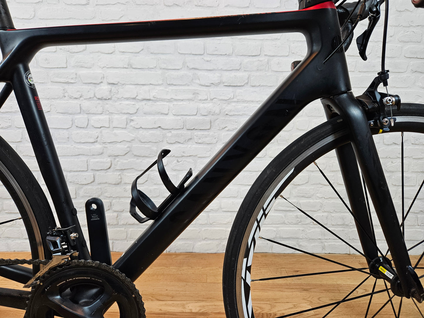 2018 Canyon Ultimate CF SLX 8.0 road bike. Hi Mod carbon fiber frame tuned for climbing. Shimano Ultegra R8000 2x11 group with rim brakes. Mavic Cosmic wheels. Integrated carbon aero bars. Weighs in at 16.25lbs. In good mechanical and cosmetic condition with some small scratches, mostly on the non drive side of the top tube. Size M for someone around 6 feet tall.