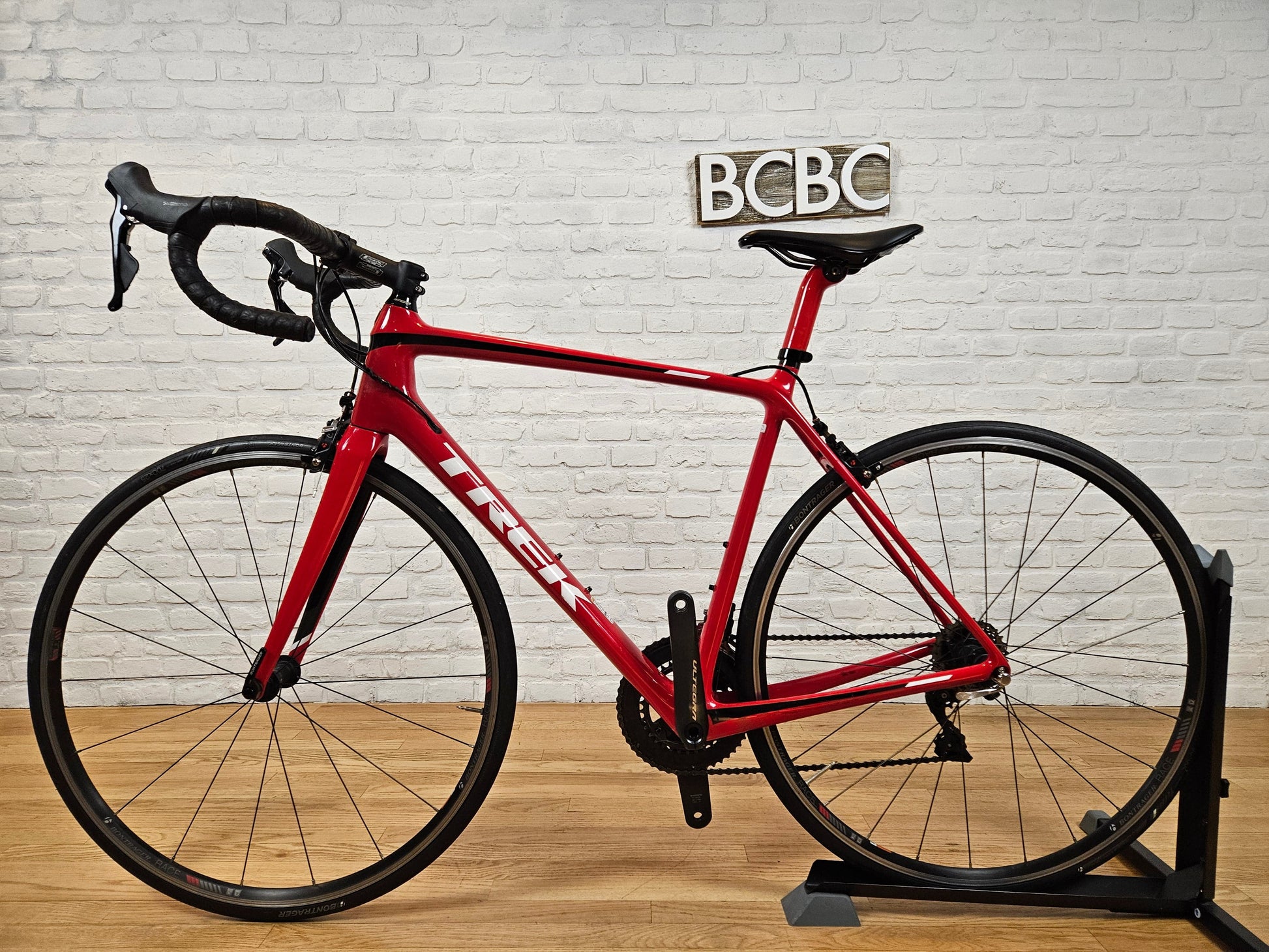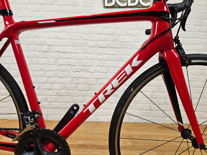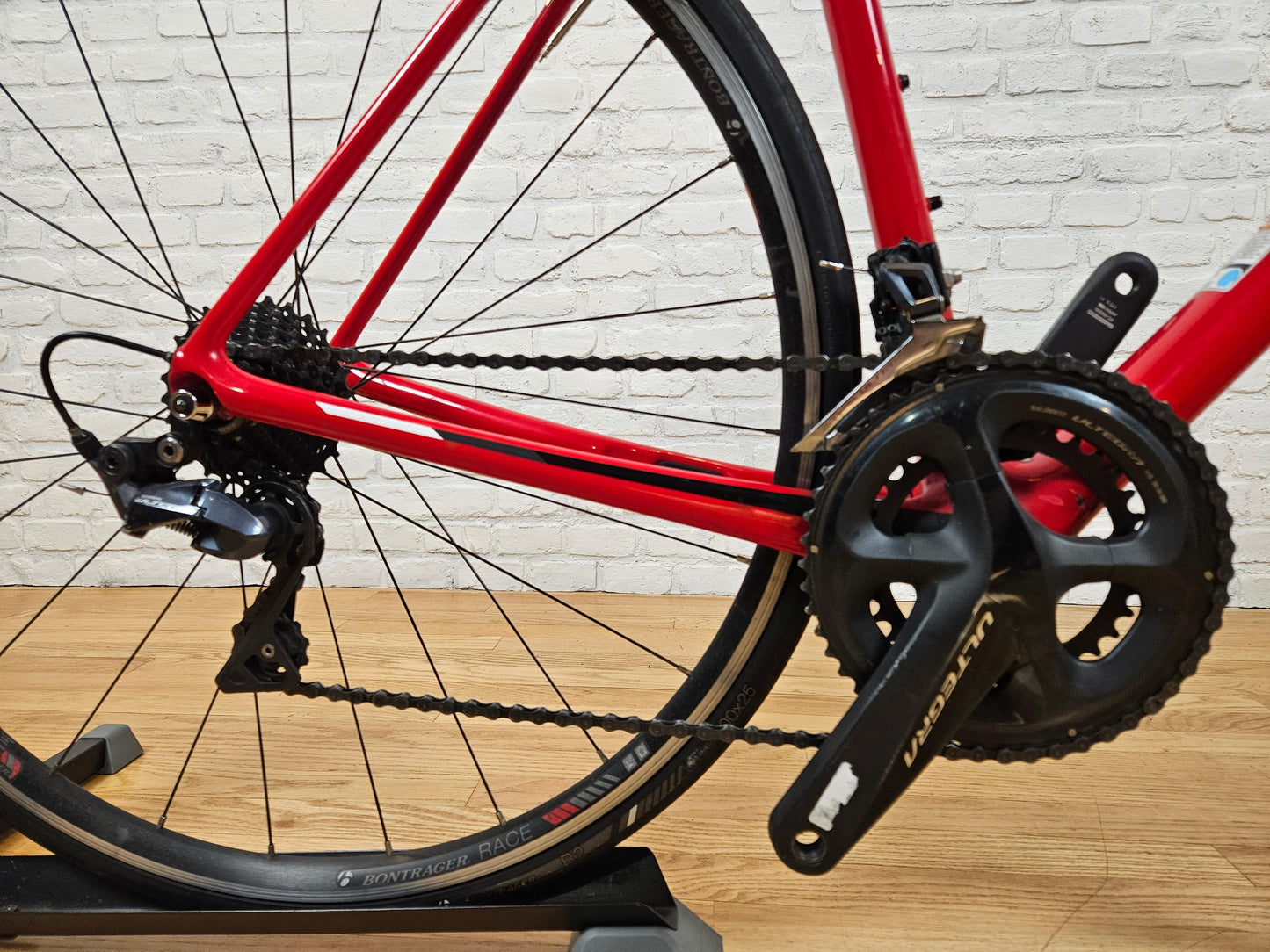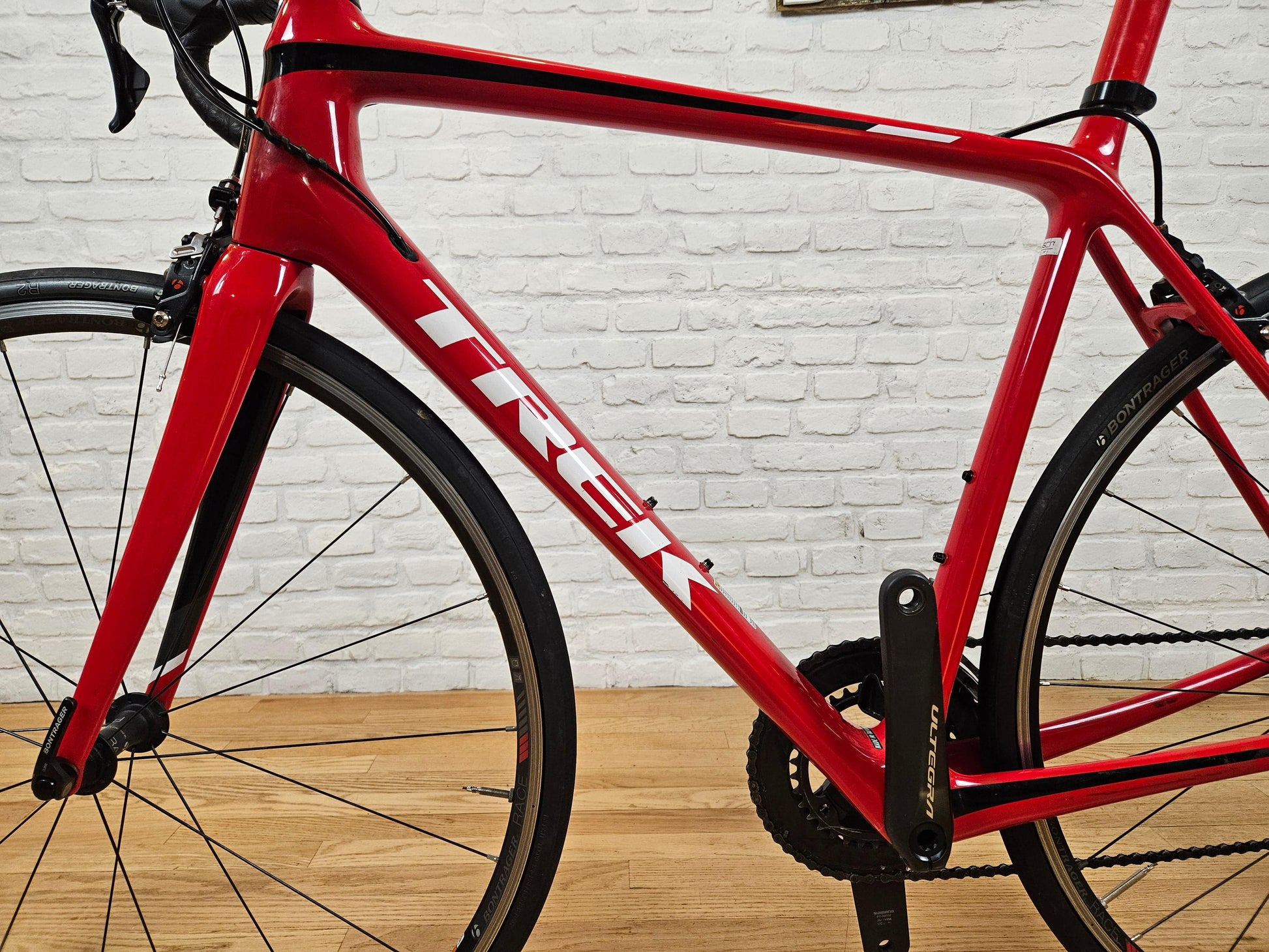 2018 Trek Emonda SL6 road bike. OCLV 500 series carbon fiber frame, great for climbing. Shimano Ultegra 2x11 groupset (R7000 left shifter) and Direct Mount brakes. Integrated carbon fiber seat post with Bontrager Aeolus Comp saddle. Bontrager Race wheels. The bike is in good mechanical and cosmetic condition with several small paint blemishes (see pics). Weighs in at 16.75lbs. 56cm frame for someone around 5'11.
