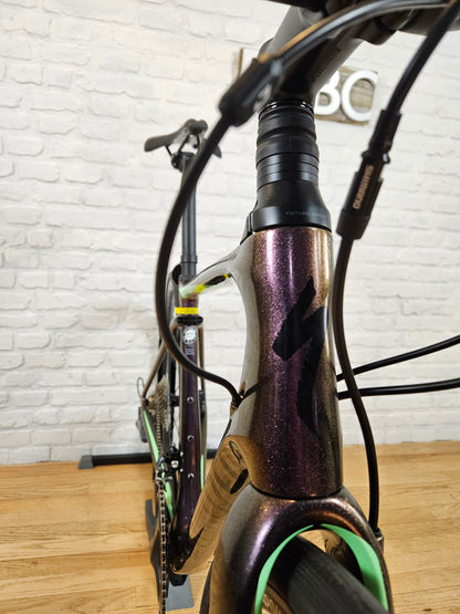 2019 Specialized Ruby Comp women's road bike. Fact 10r carbon frame with endurance geometry and Futureshock. Shimano Ultegra 2x11 groupset with Hydraulic Disc brakes. S-Works carbon fiber seat post with Ruby saddle. DT Swiss R470 wheels with Turbo Gripton 28mm tires. 52cm frame for someone around 5'6. The bike was assembled and NEVER ridden.