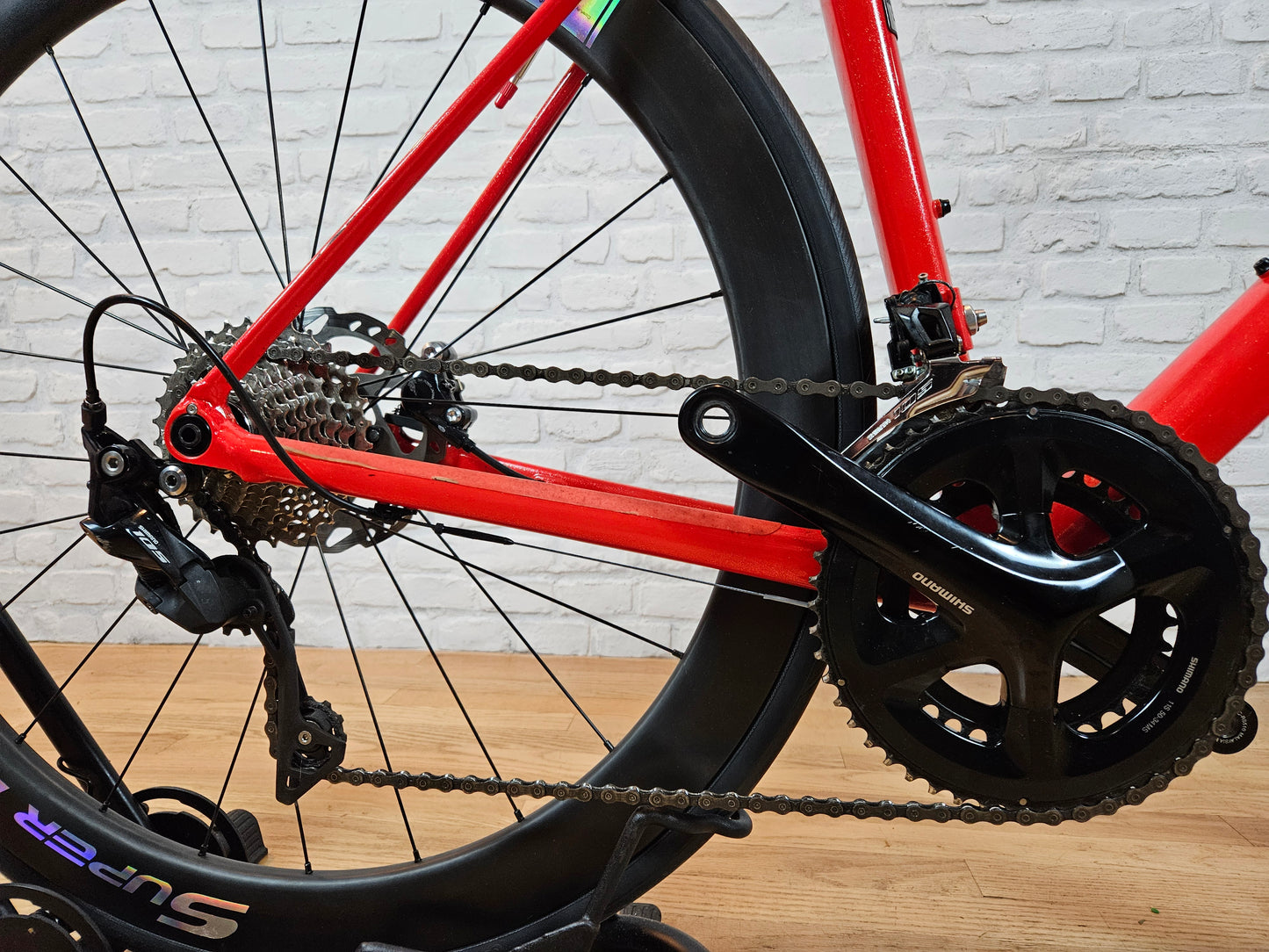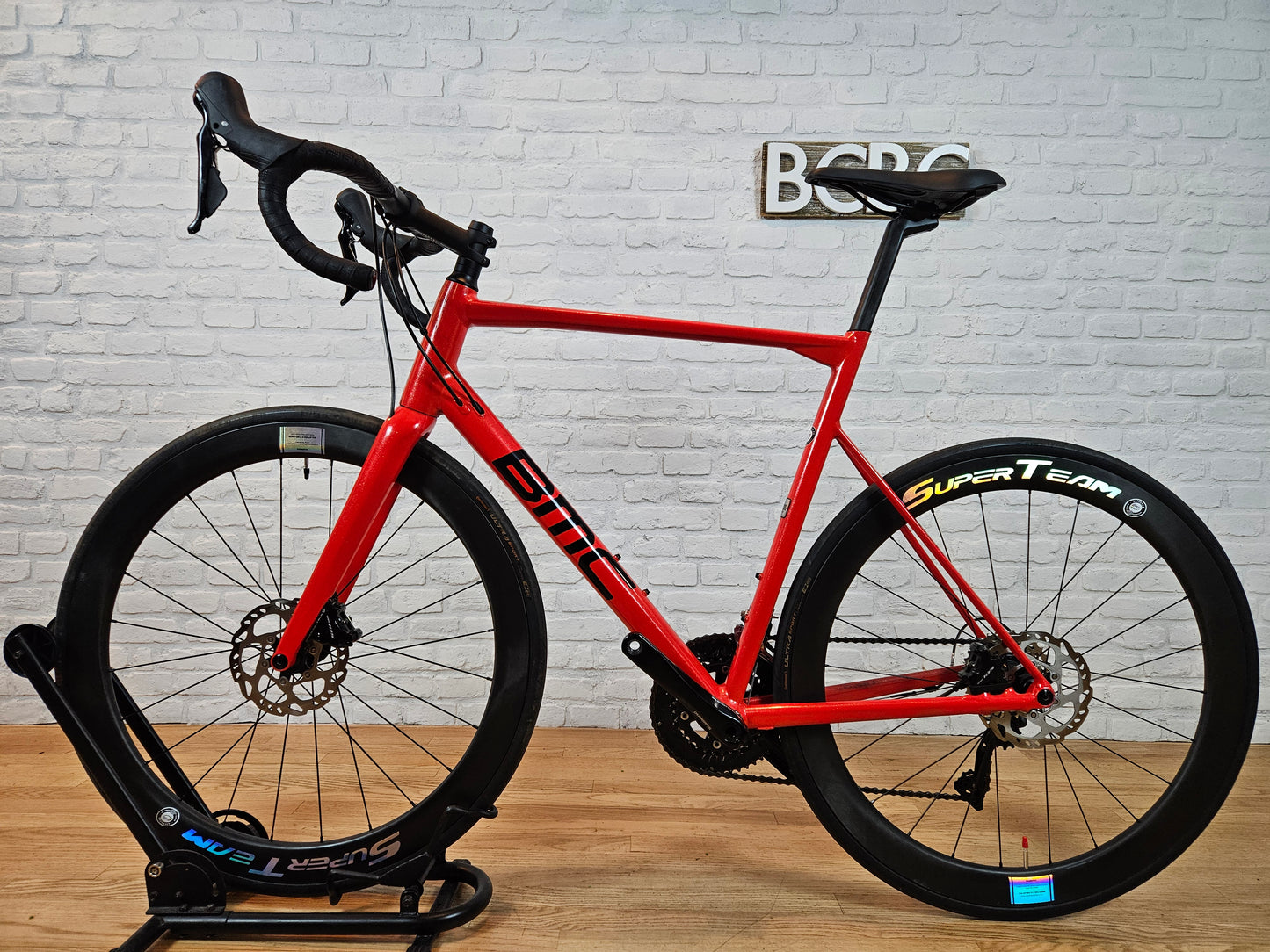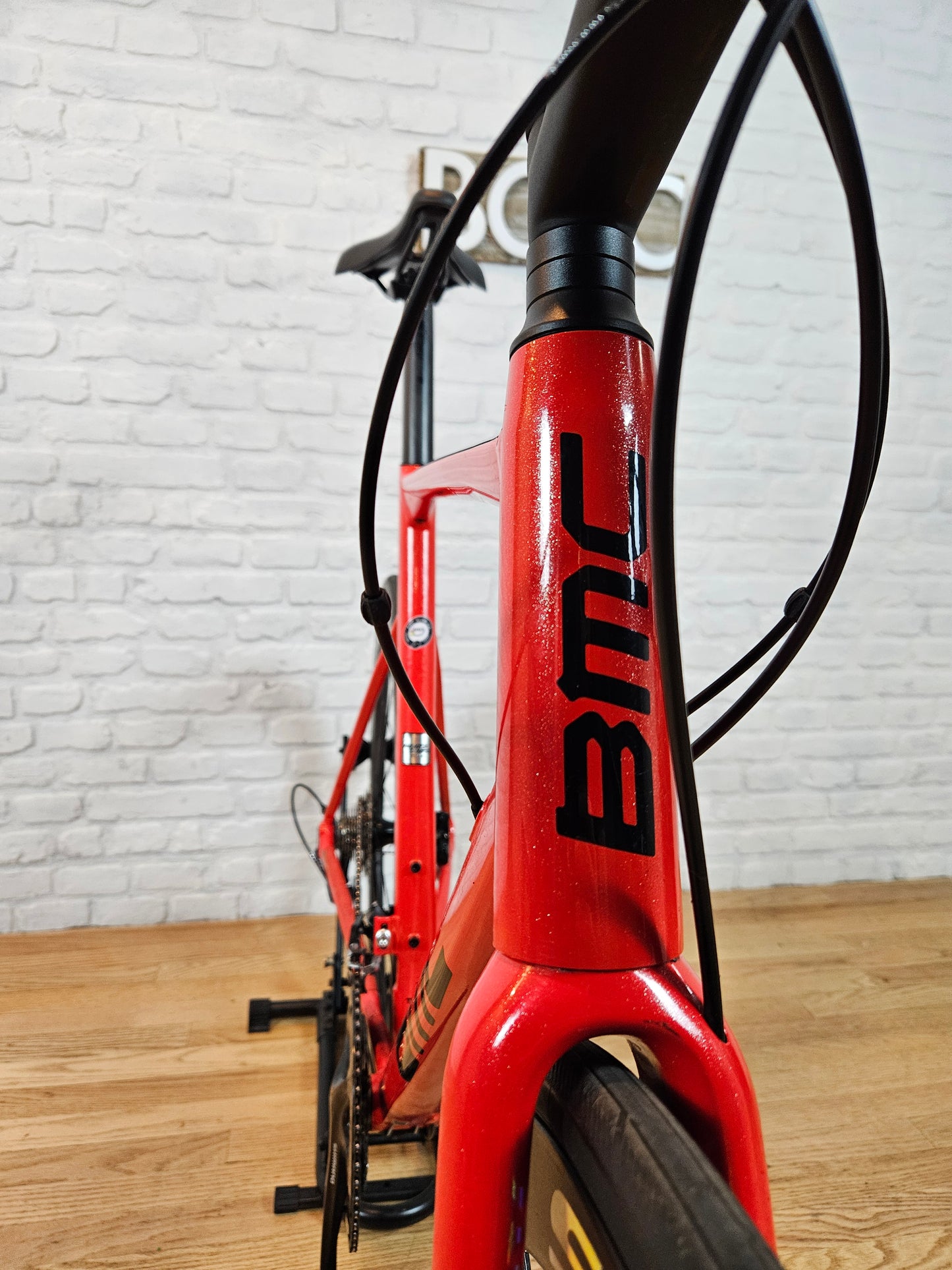 2021 BMC TeamMachine ALR TWO road bike. Aluminum frame and carbon fork with racing geometry. Shimano 105 2x11 groupset with Hydraulic disc brakes. SuperTeam carbon fiber deep section wheels wheels with Continental UltraSport tires. The bike is in excellent mechanical and cosmetic condition. 57cm frame for someone around 6 feet tall.