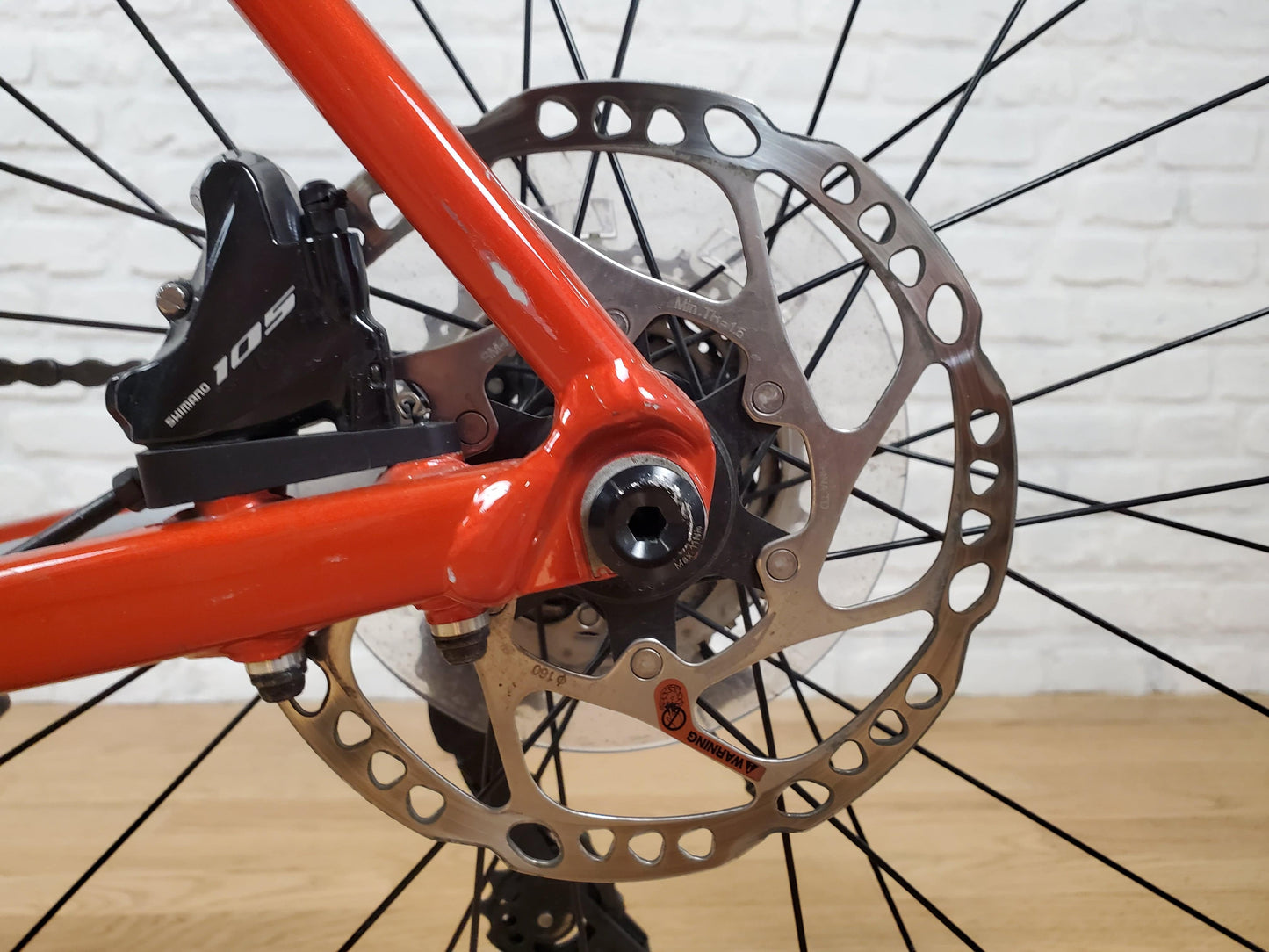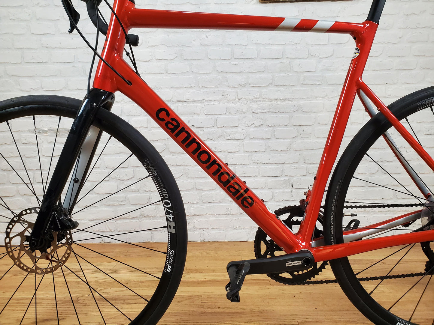 2021 Cannondale CAAD13 Disc 105 road bike. Carbon fork and aluminum frame with racing geometry. Shimano 105 2x11 groupset with hydraulic disc brakes. DT Swiss 470wheels with 28mm Vittoria Zaffiro. 60cm frame for someone around 6'2 feet tall. In good mechanical and cosmetic condition.