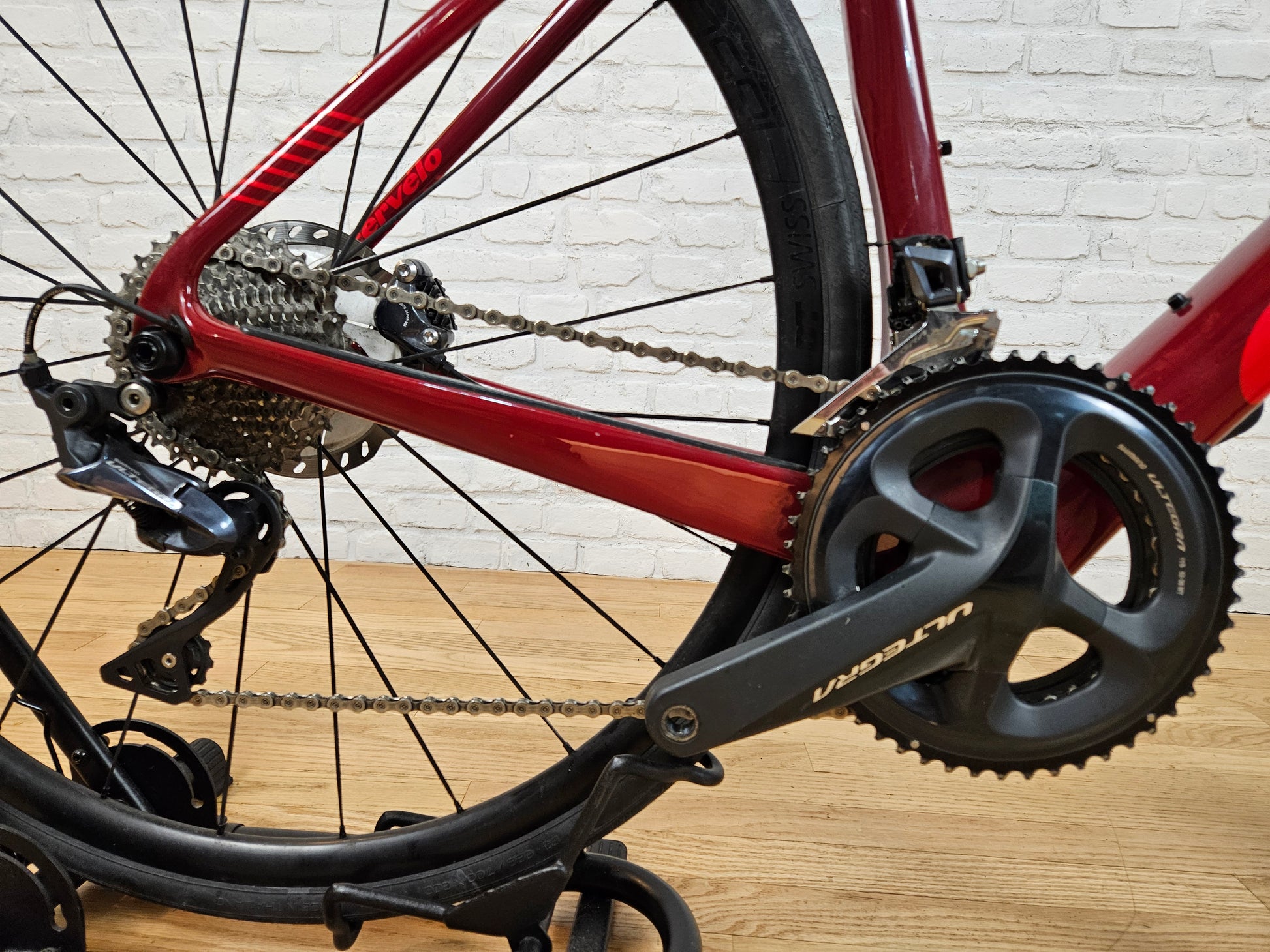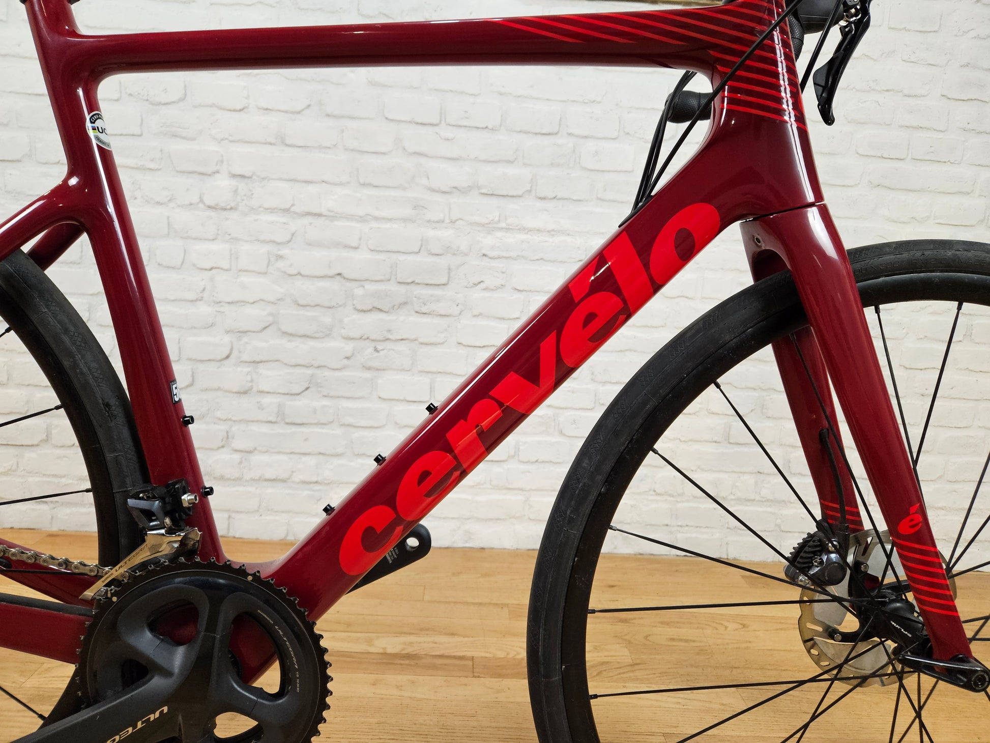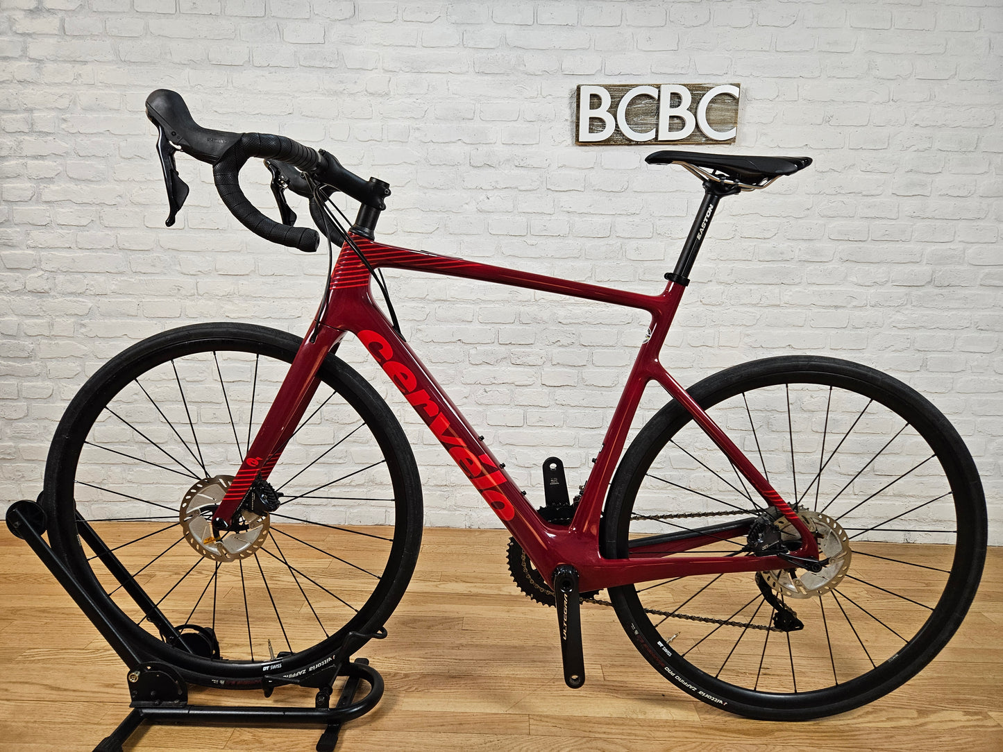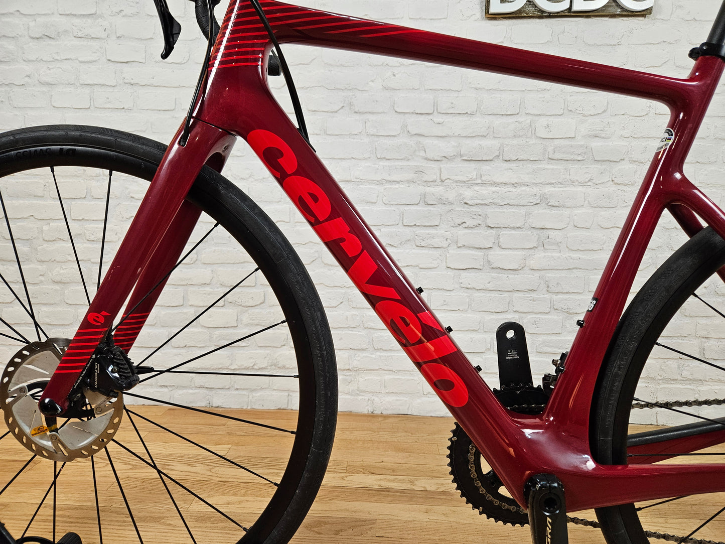 2021 Cervelo Caledonia Endurance Road Bike. Carbon fiber frame with 2x11 Shimano Ultegra groupset with Hydraulic Disc Brakes. DT Swiss E1850 wheels with 30mm Vittoria Zaffiro Pro tires. Easton seatpost and Bontrager Affinity Comp saddle. 56cm for someone around 5'11.  In very good cosmetic and mechanical condition.