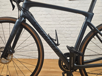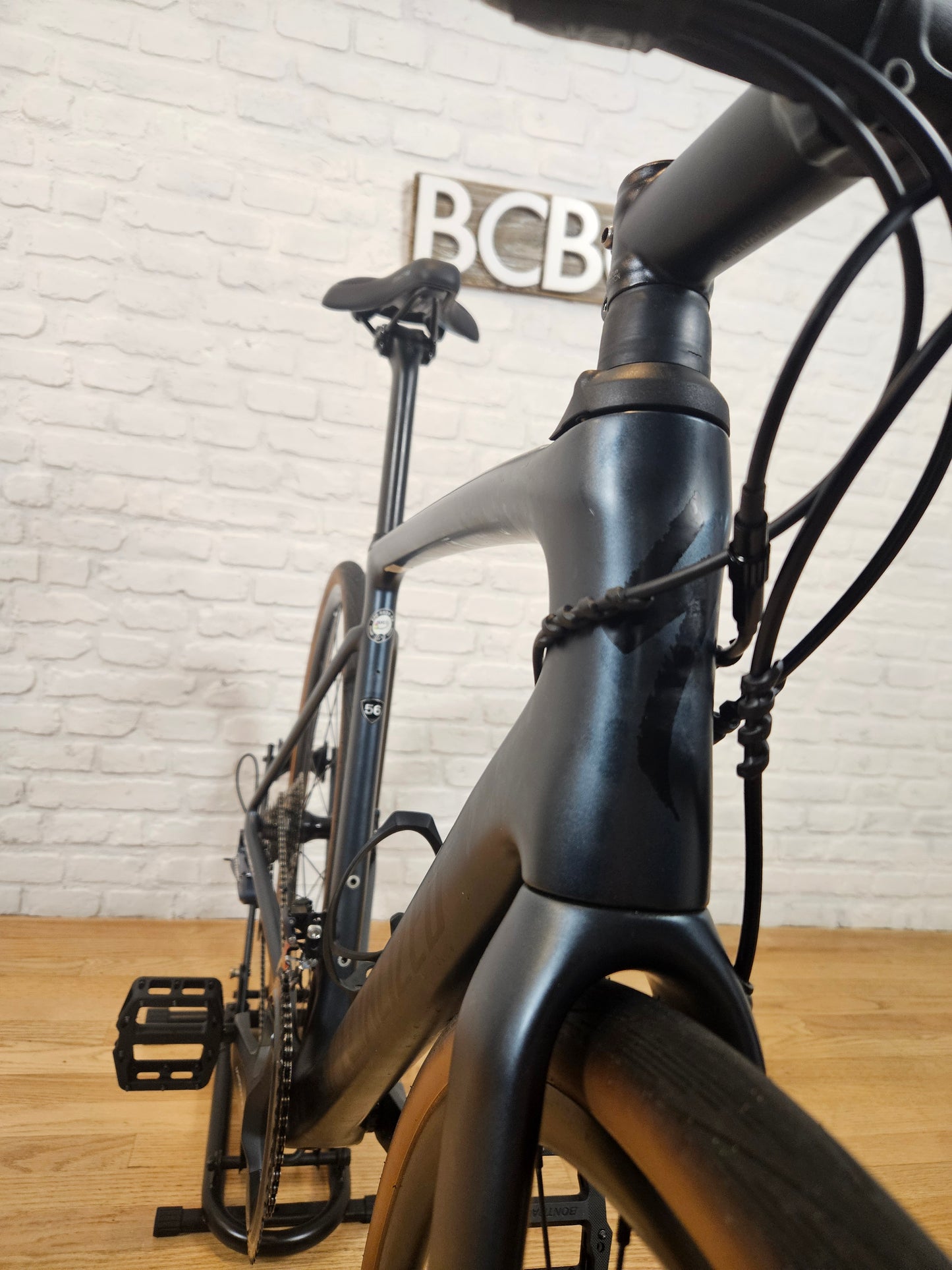 2021 Specialized Roubaix Disc road bike. Fact 10r carbon fiber frame with endurance geometry and Futureshock 1.5. Shimano Ultegra 2x11 groupset with hydraulic disc brakes. S-Works Pave carbon fiber seat post with Bonty Commuter  saddle. DT Swiss R470  wheels with Lugano 32mm tires. 56cm frame for someone around 6'. The bike is in excellent mechanical and cosmetic condition.