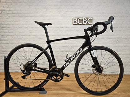 2022 Specialized Roubaix Sport Disc road bike. Fact 10r carbon fiber frame with endurance geometry and Futureshock 1.5. Shimano 105 2x11 groupset with hydraulic disc brakes. S-Works carbon fiber seat post with Power saddle. DT Swiss R470 wheels with Turbo Pro 28mm. 56cm frame for someone around 6 feet. The bike is in pristine mechanical and cosmetic condition.