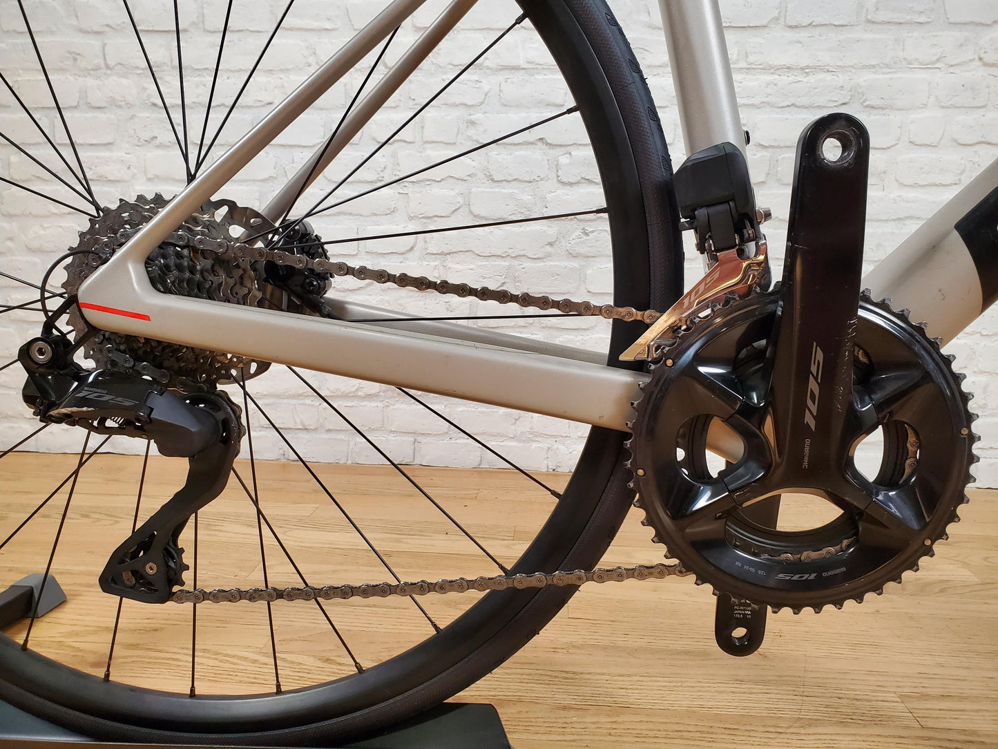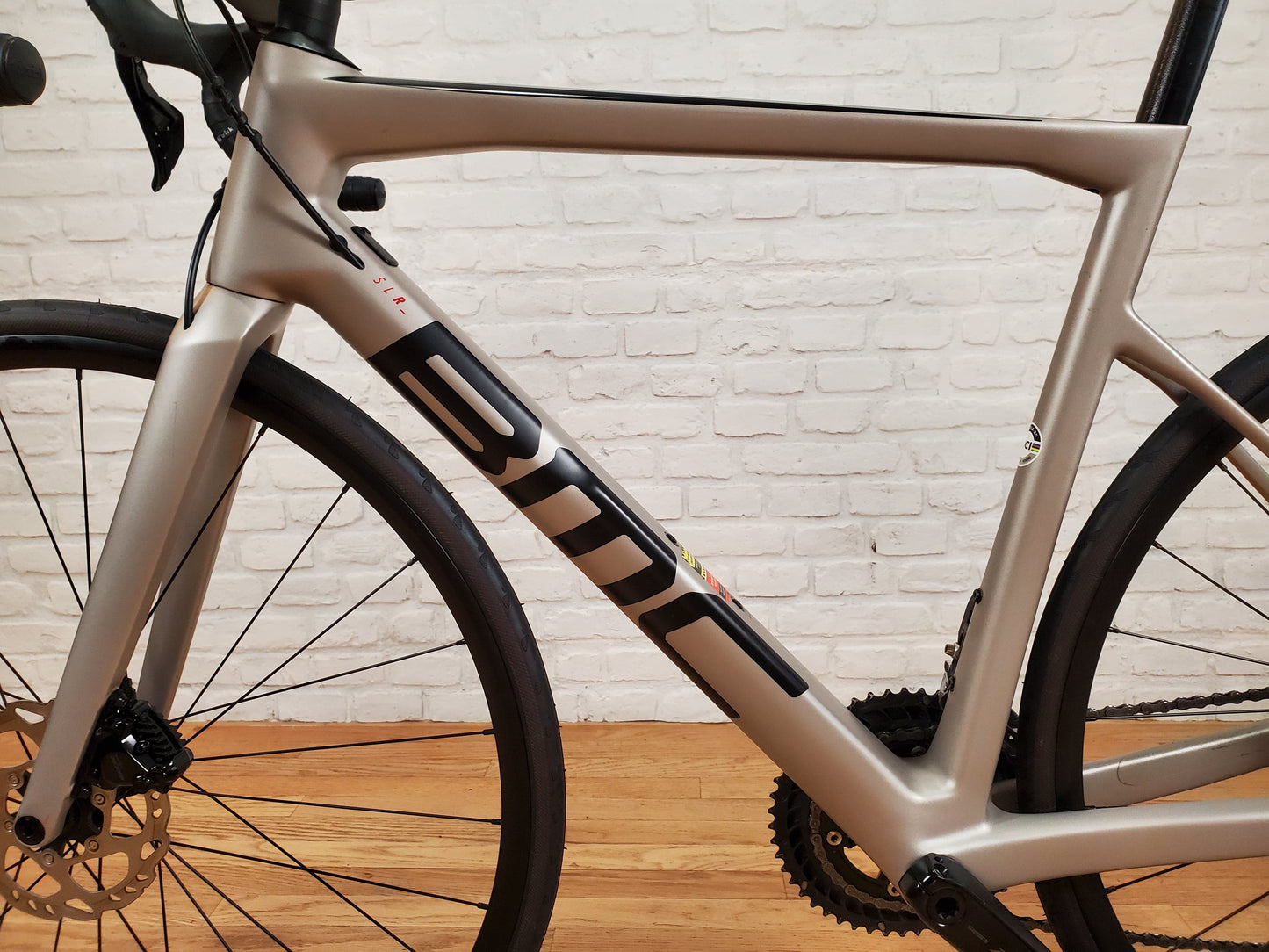 2023 BMC TeamMachine SLR FIVE road bike. Carbon fiber frame with racing geometry. Shimano 105 2x12 Di2 electronic groupset. Roval Carbon aero bars. Mavic Aksium wheels with new Gatorskin tires.  The bike is in excellent mechanical and cosmetic condition with a scratch on the drive side down tube (see last pic). 54cm frame for someone around 5'9.