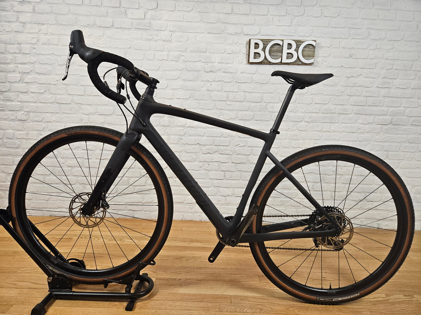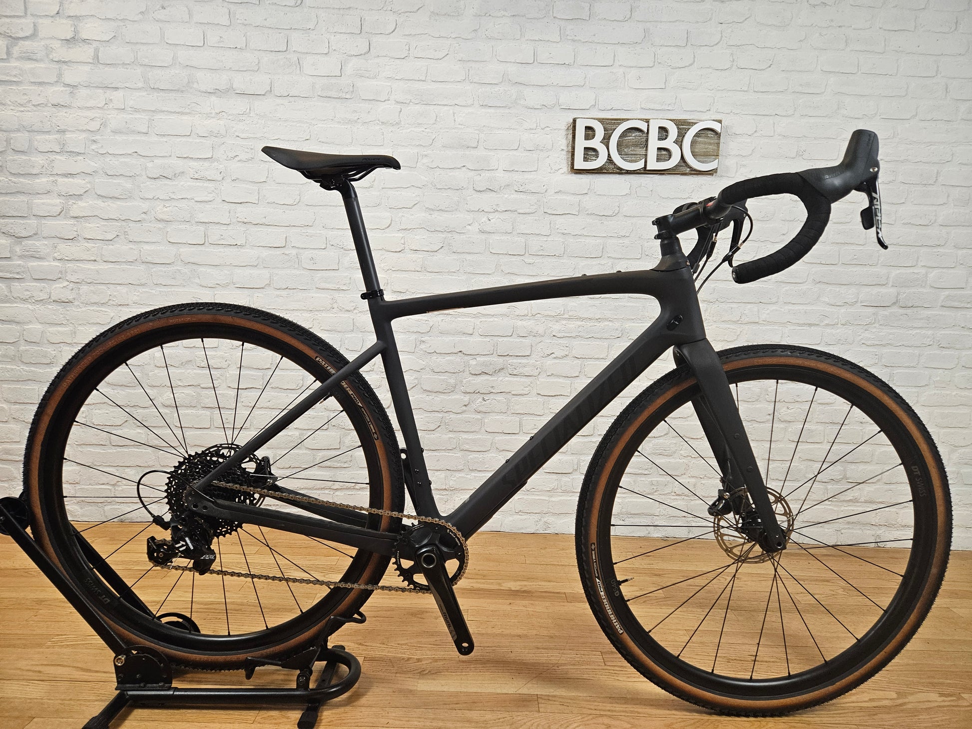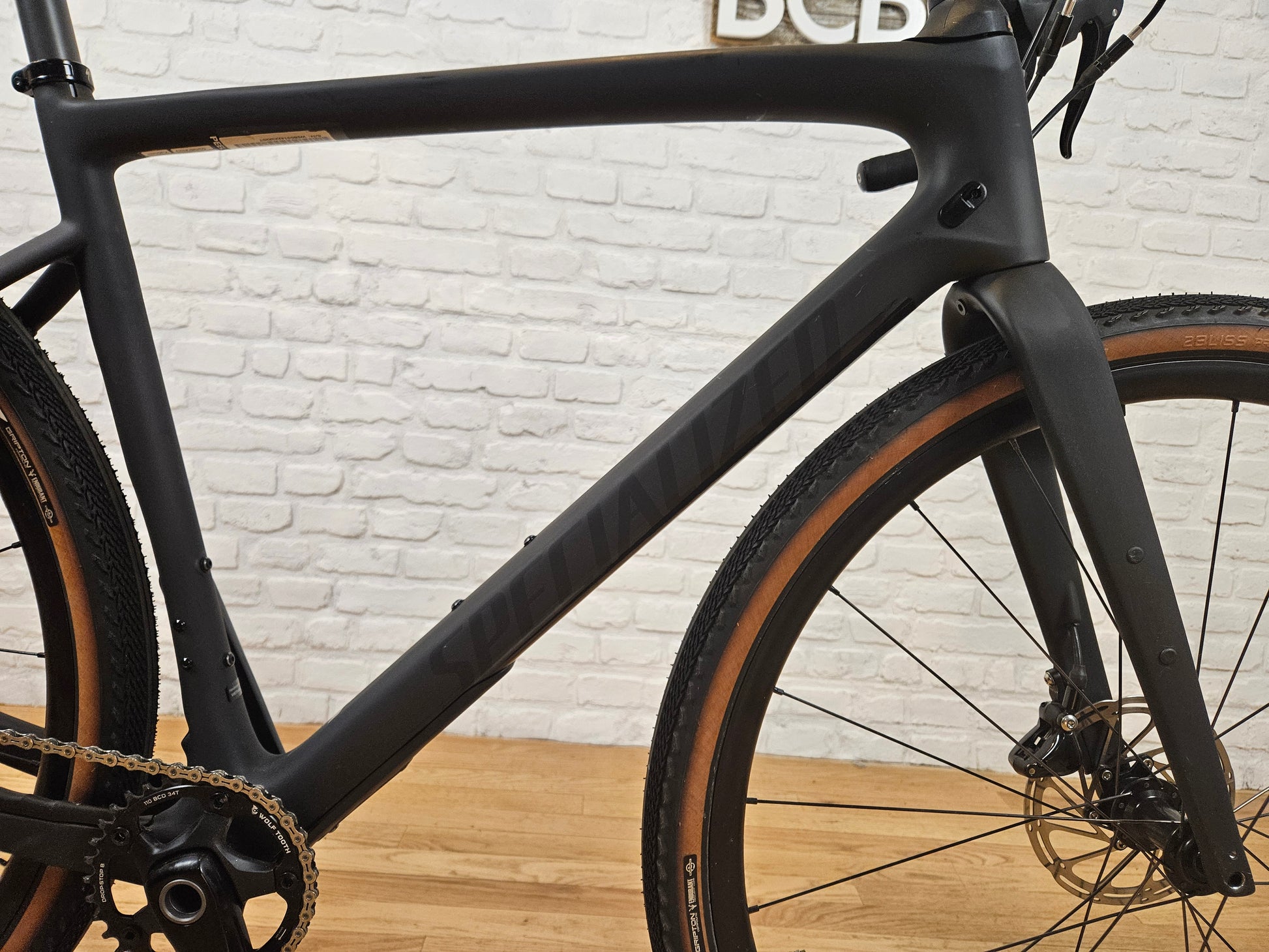 2023 Specialized Diverge Sport gravel bike. Carbon fiber frame with Futureshock 1.5. SRAM Apex 1x11 groupset Rival crank with hydraulic disc brakes. Carbon fiber seat post with Specialized Power saddle. DT Swiss G540 wheels with Pathfinder Pro 42mm tires. 56cm frame for riders around 5'11. The bike is in excellent mechanical and cosmetic condition.
