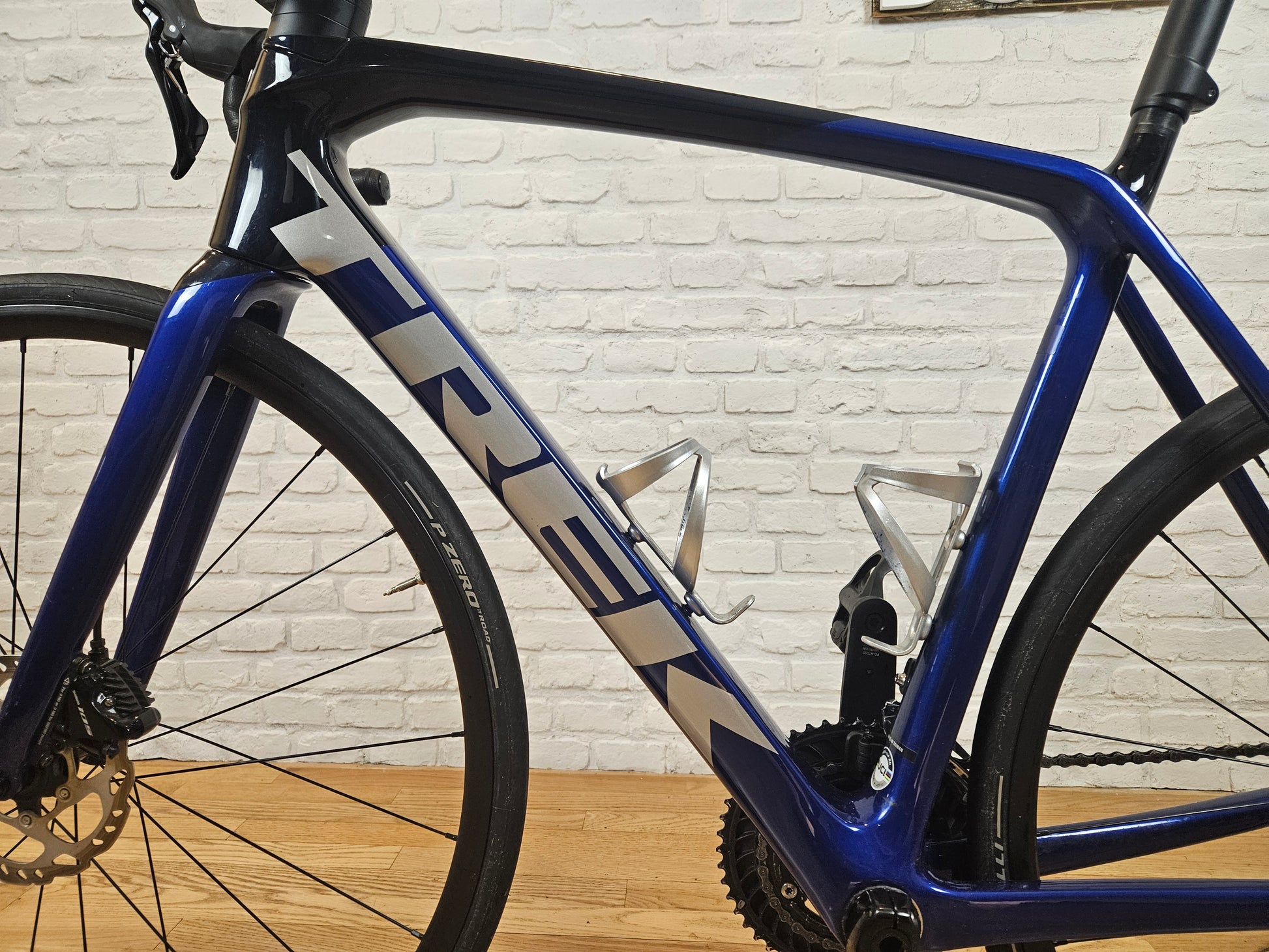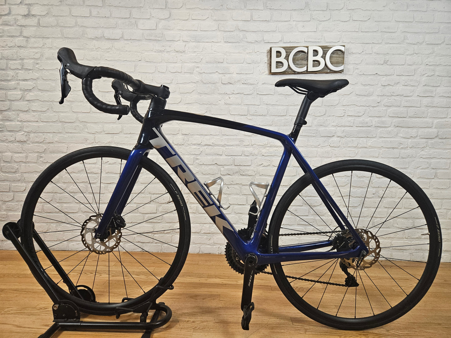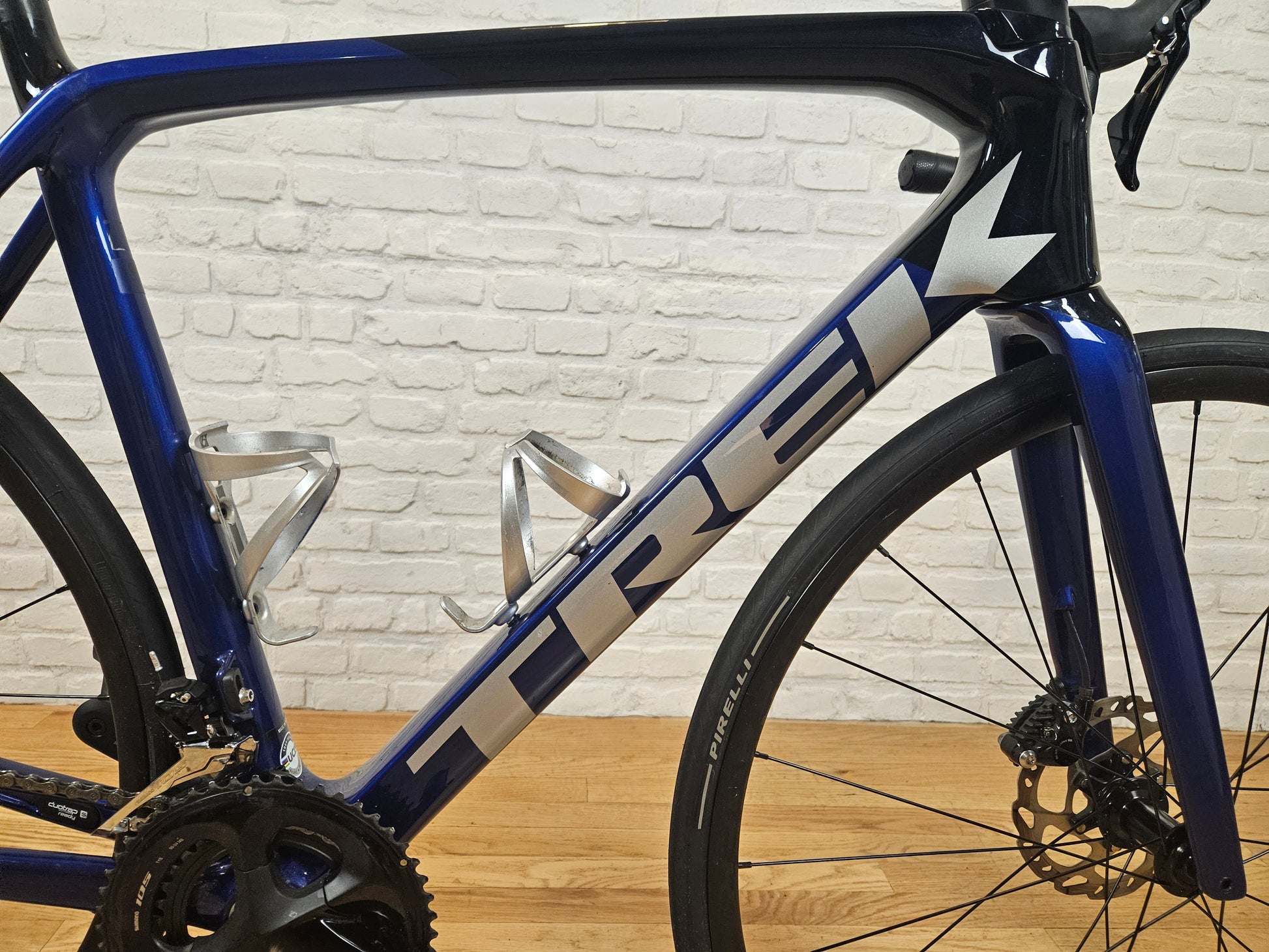 2023 Trek Emonda SL5 road bike. OCLV 500 series carbon fiber frame tuned for climbing. Shimano 105 2x11 groupset with Hydraulic Disc brakes. Integrated carbon fiber seat post with Bontrager Verse saddle. Bontrager Paradigm wheels with new P Zero 28mm tires. The bike is in pristine mechanical condition and cosmetic condition. 56cm frame for someone around 6'.