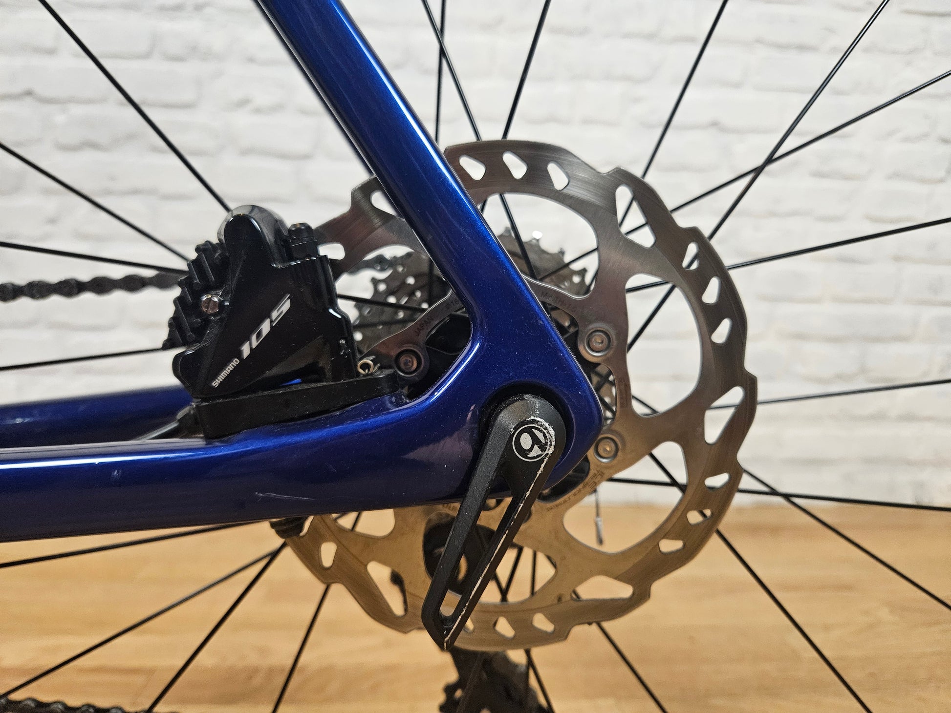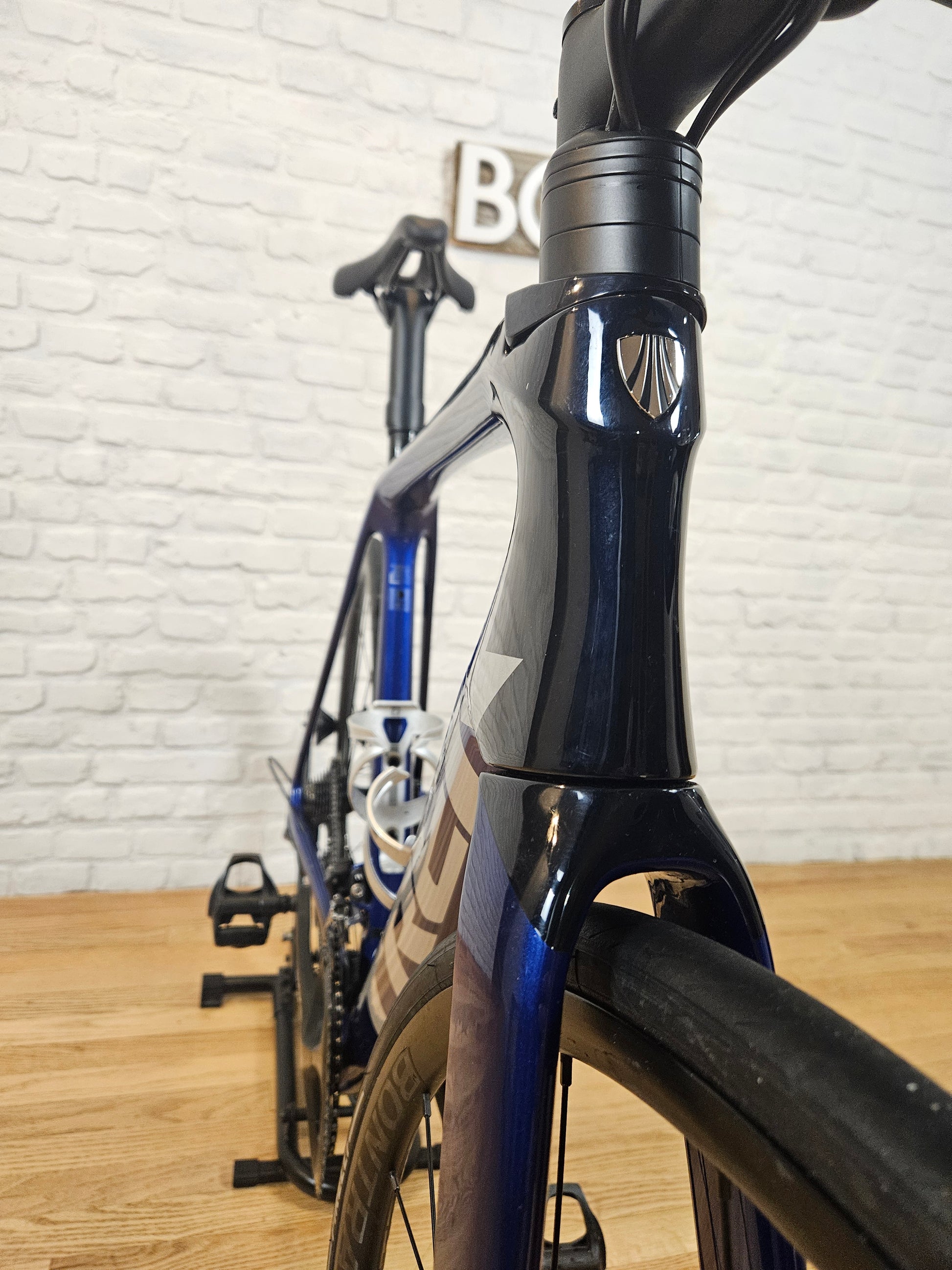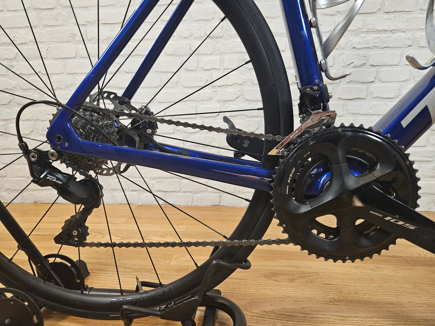 2023 Trek Emonda SL5 road bike. OCLV 500 series carbon fiber frame tuned for climbing. Shimano 105 2x11 groupset with Hydraulic Disc brakes. Integrated carbon fiber seat post with Bontrager Verse saddle. Bontrager Paradigm wheels with new P Zero 28mm tires. The bike is in pristine mechanical condition and cosmetic condition. 56cm frame for someone around 6'.