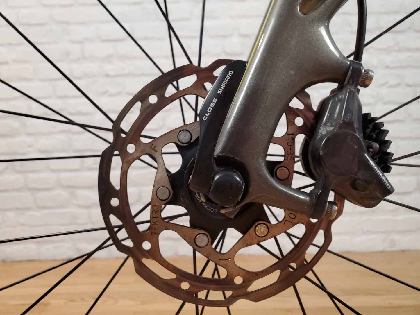 2015 Specialized Roubaix SL4 Disc road bike. Carbon fiber frame with endurance geometry and Zerts inserts for vibration dampening. Shimano Ultegra 2x11 groupset with hydraulic disc brakes. Carbon fiber seat post with Fizik Alpaca saddle. Shimano RX wheels with 28mm tires. 56cm frame for someone around 5'11. The bike is in good mechanical and cosmetic condition with some blemishes on the top tube and oxidation on the left side of Zerts insert (see last pics).